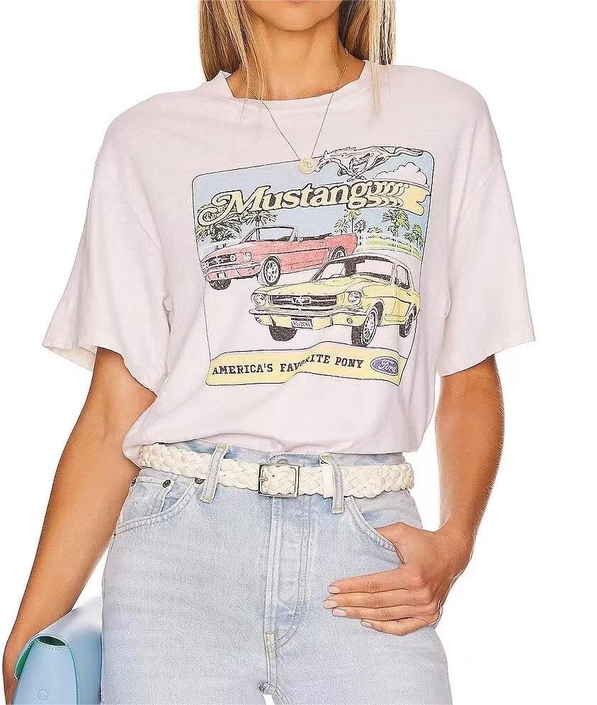 Locomotive Printed Round Neck Pullover Short Sleeve T shirt