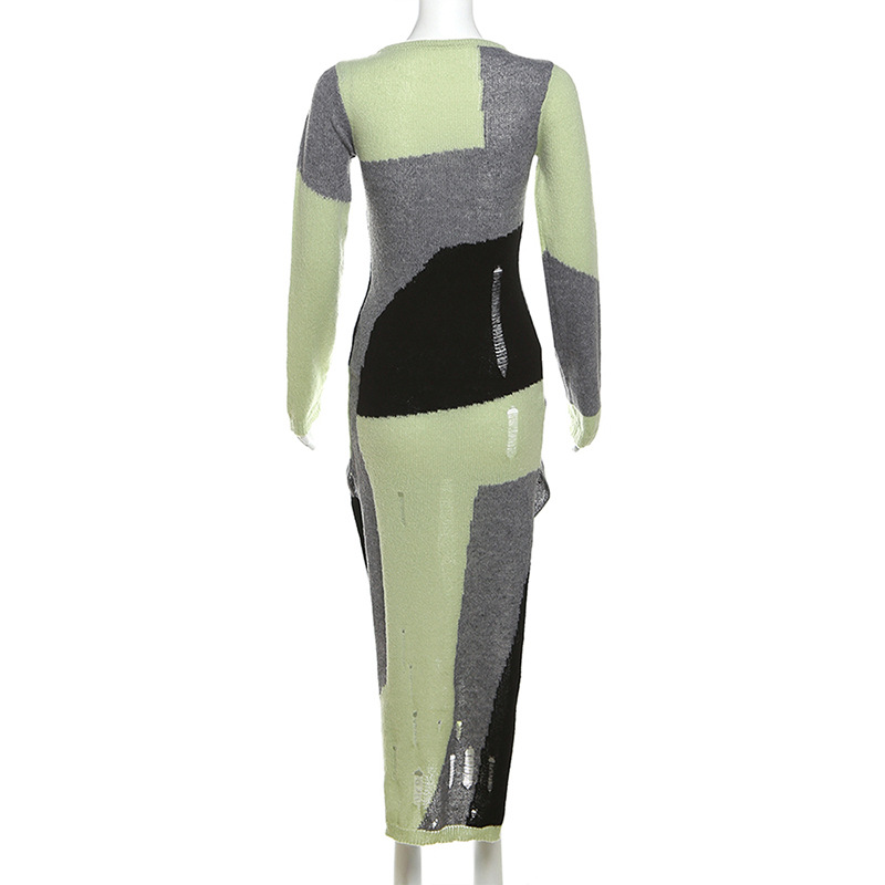 Long Sleeve Knitted round Neck High Waist Slim Maxi Dress