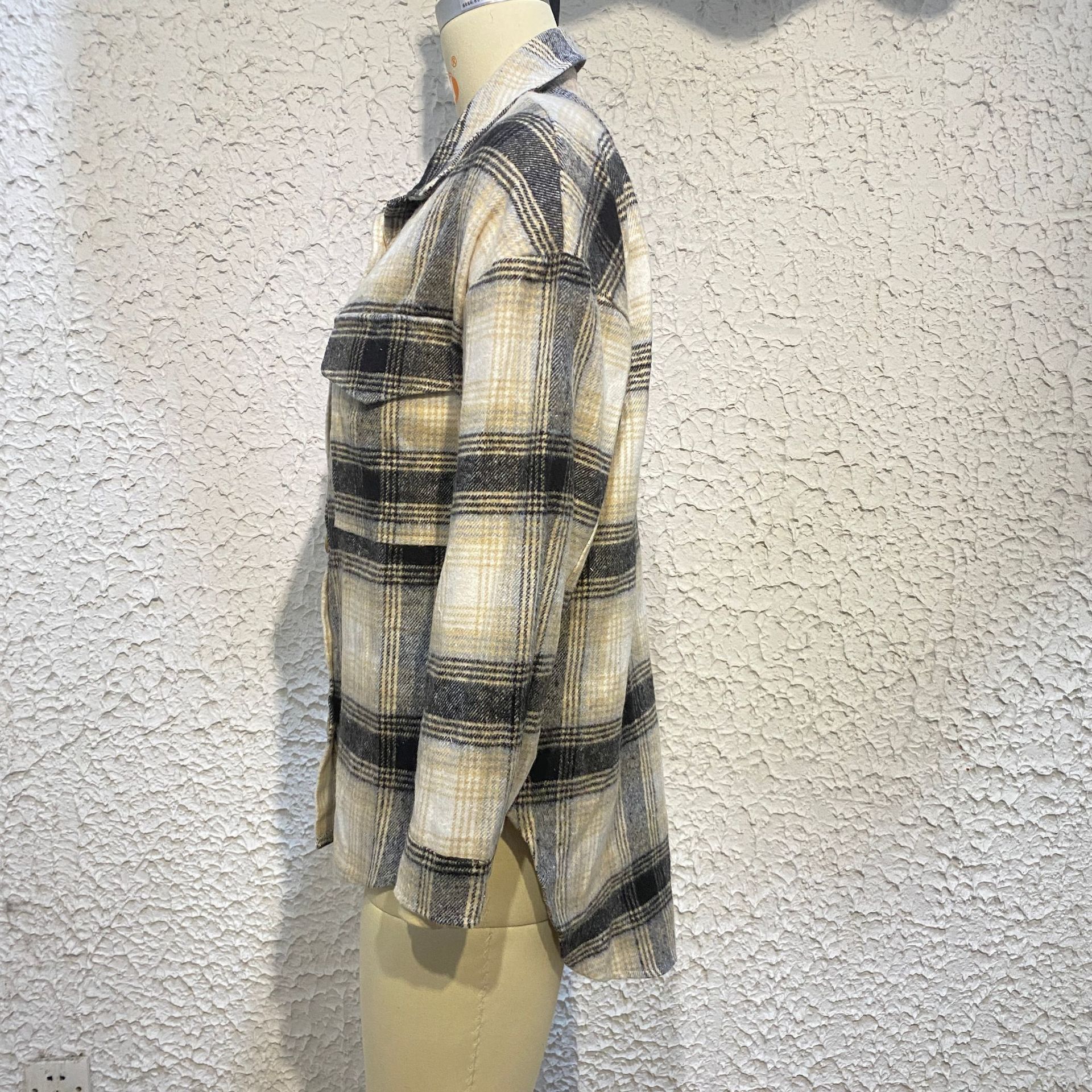 Long Sleeve Loose Plaid Shirt Woolen Coat