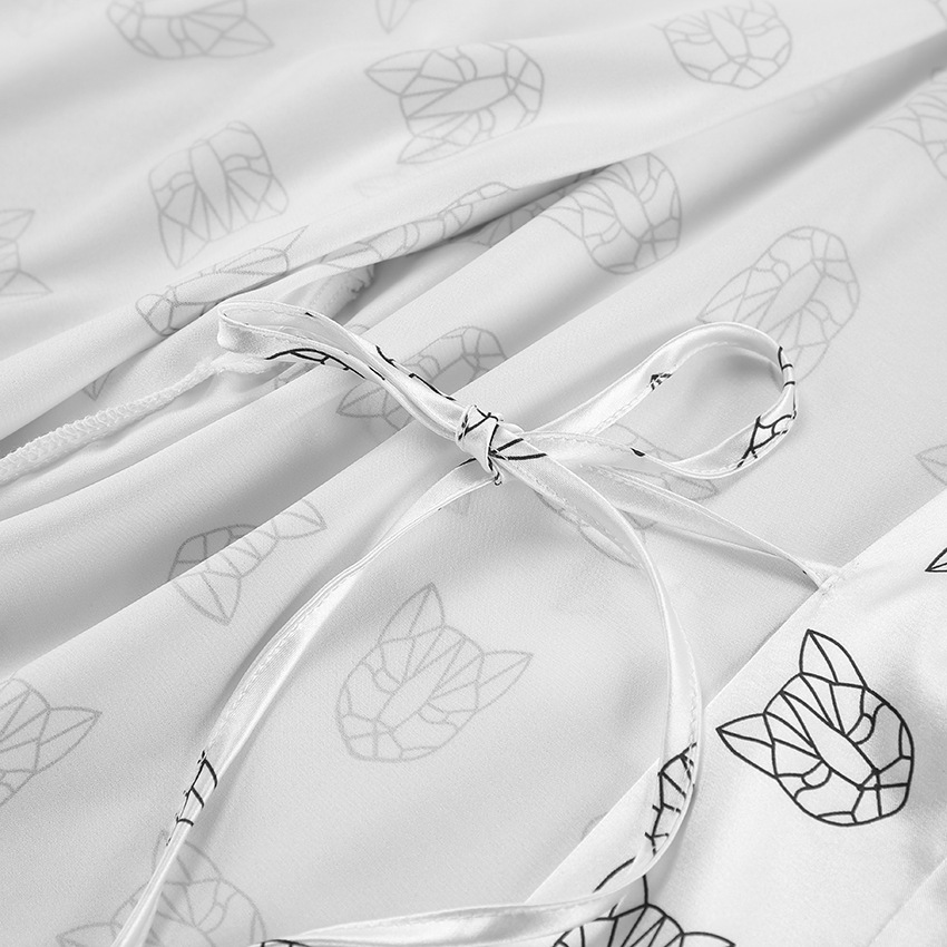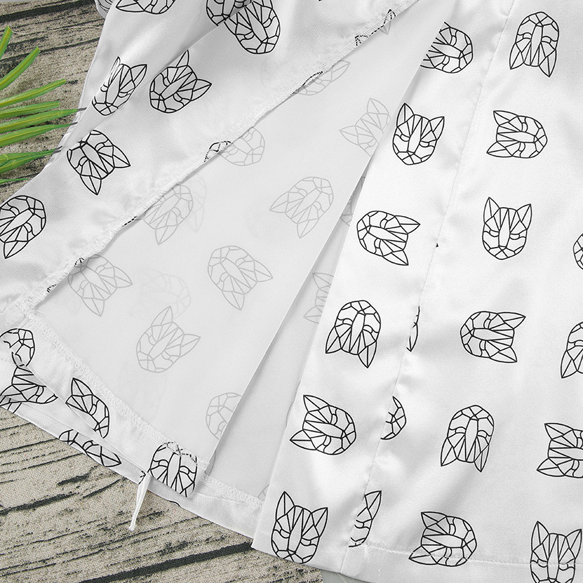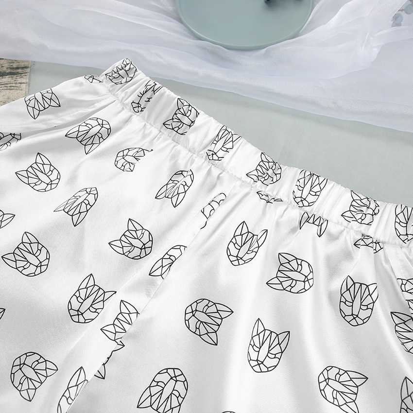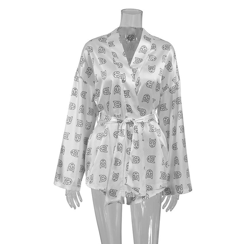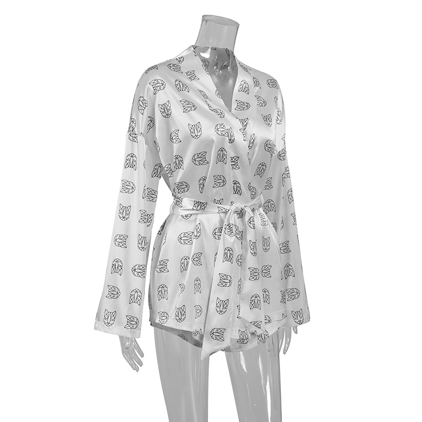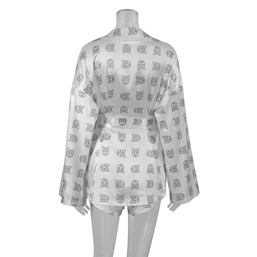 Long Sleeve Shorts Printed Pajamas Two Piece Set Casual Cardigan Loose Homewear