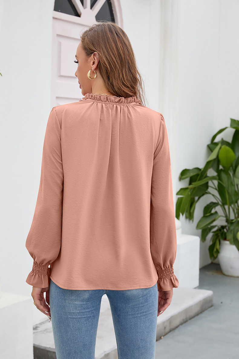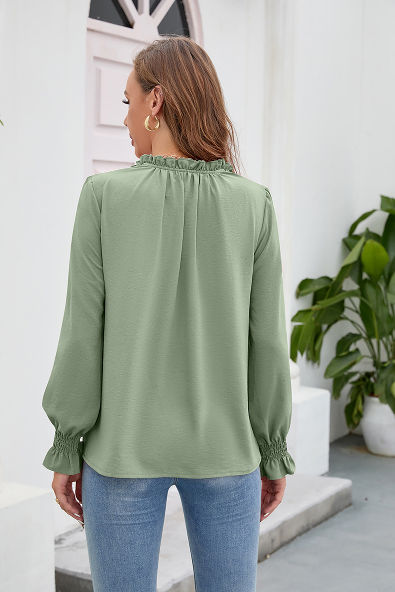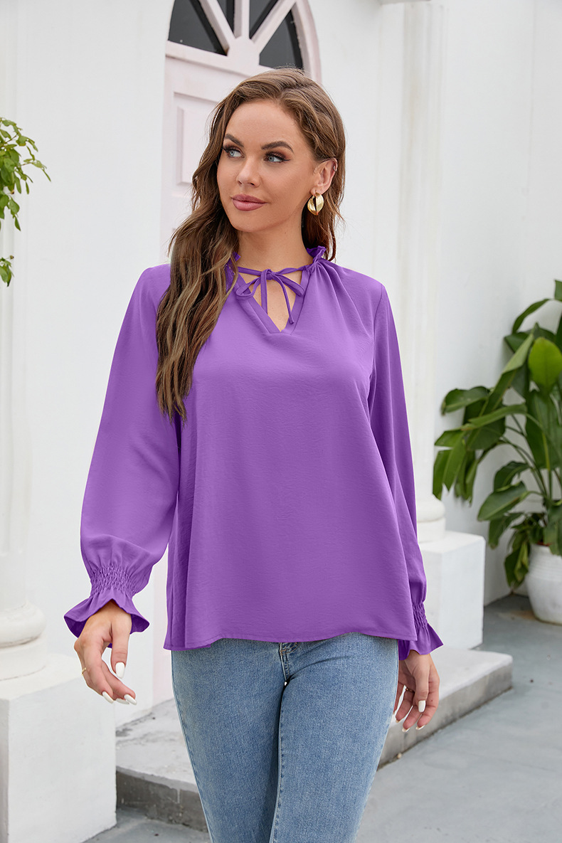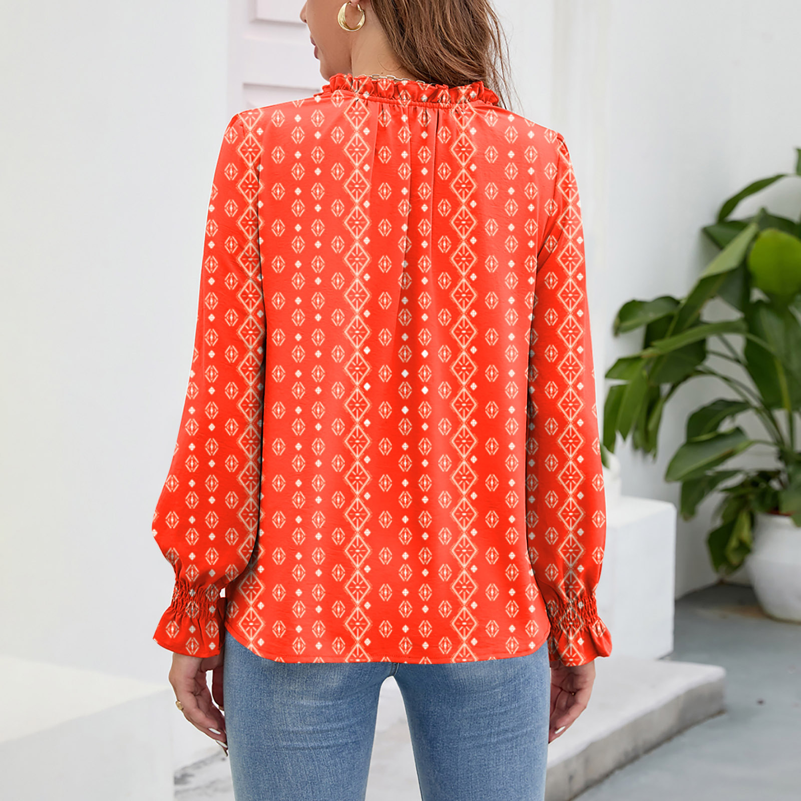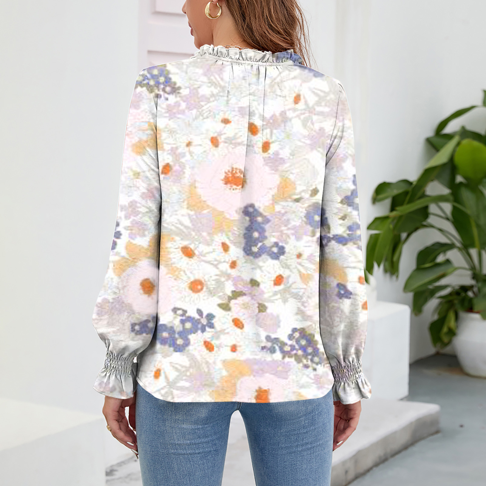 Long Sleeved Top Fall V neck Casual Loose Chiffon Blouses