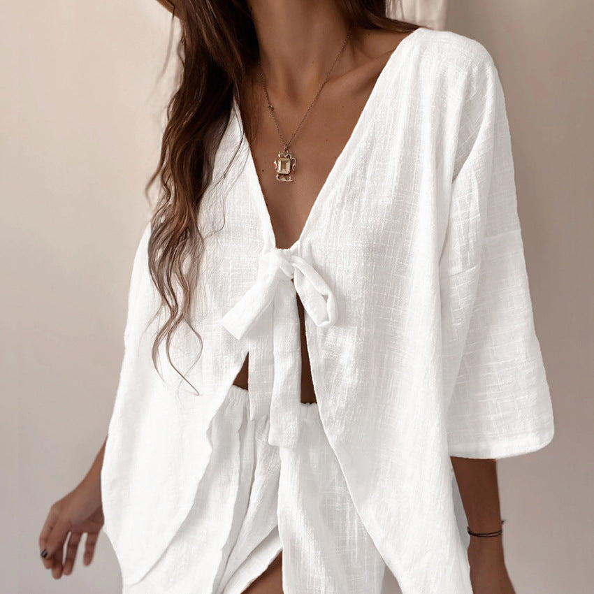 Loose Pure Cotton Half Sleeve Shorts Pajamas Two Piece Set Home Wear