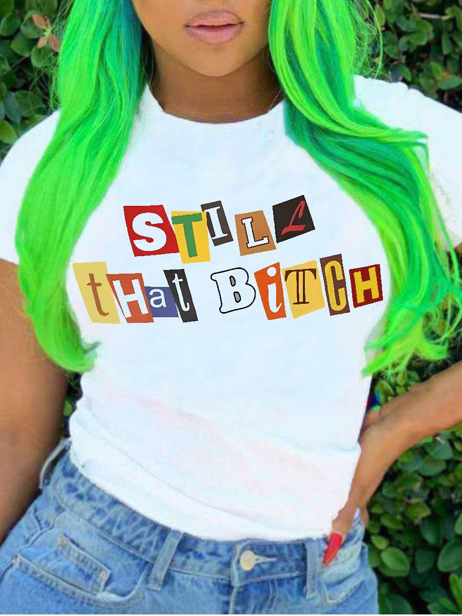 Loose Top Letter Graphic Print T-shirt round Neck Short Sleeve T-shirt