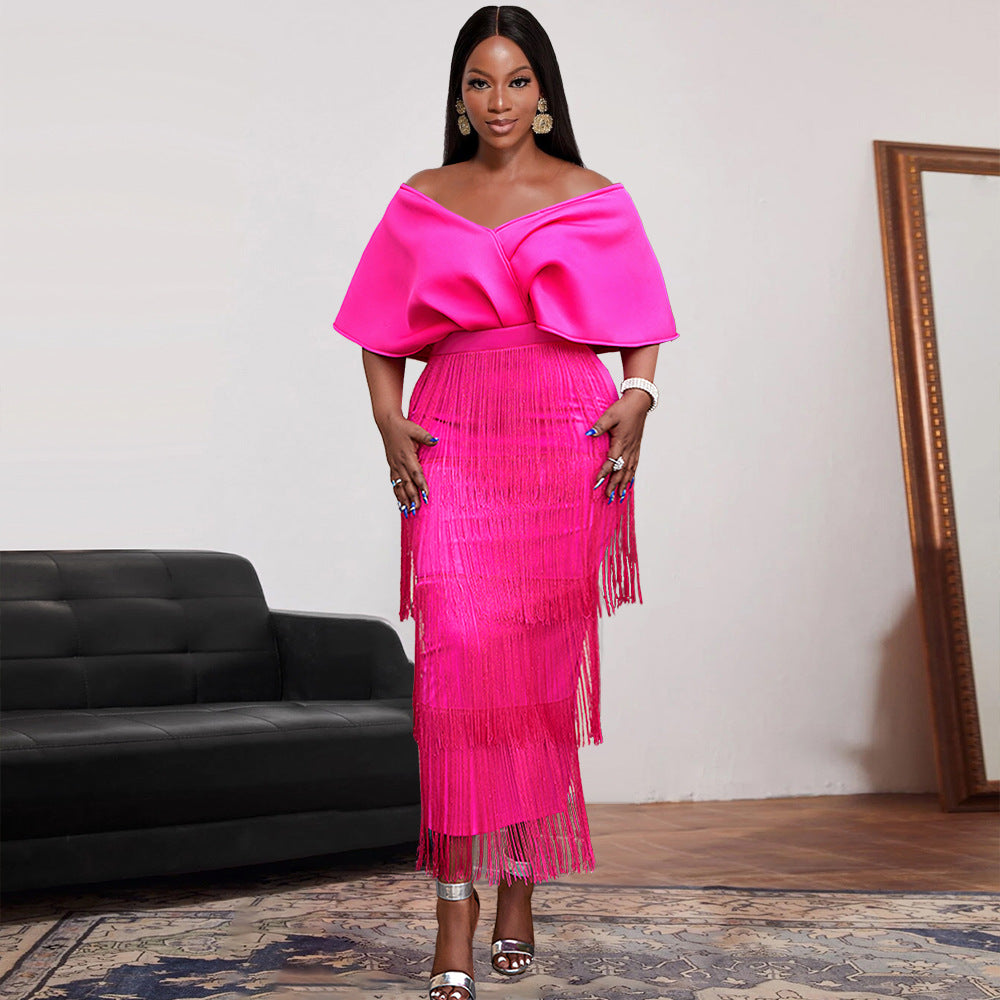 Low Cut Deep V Plunge neck Tassel Dress Birthday Party One Step Dress Bodycon Dress
