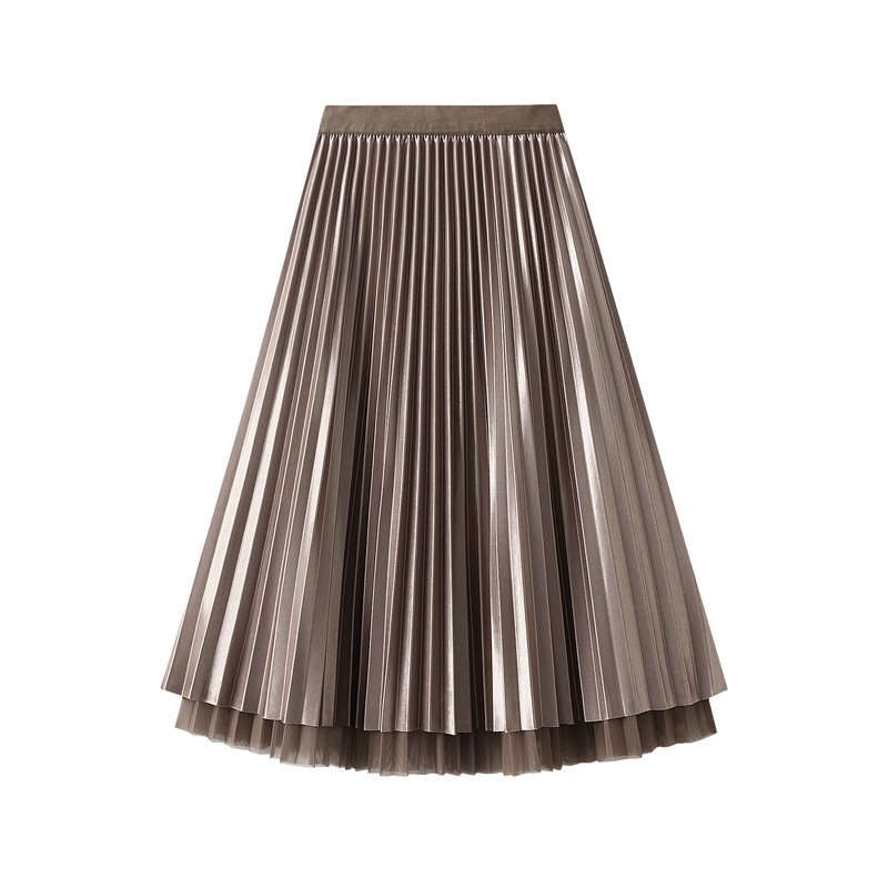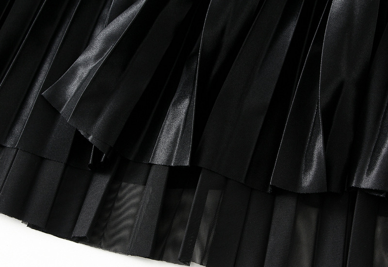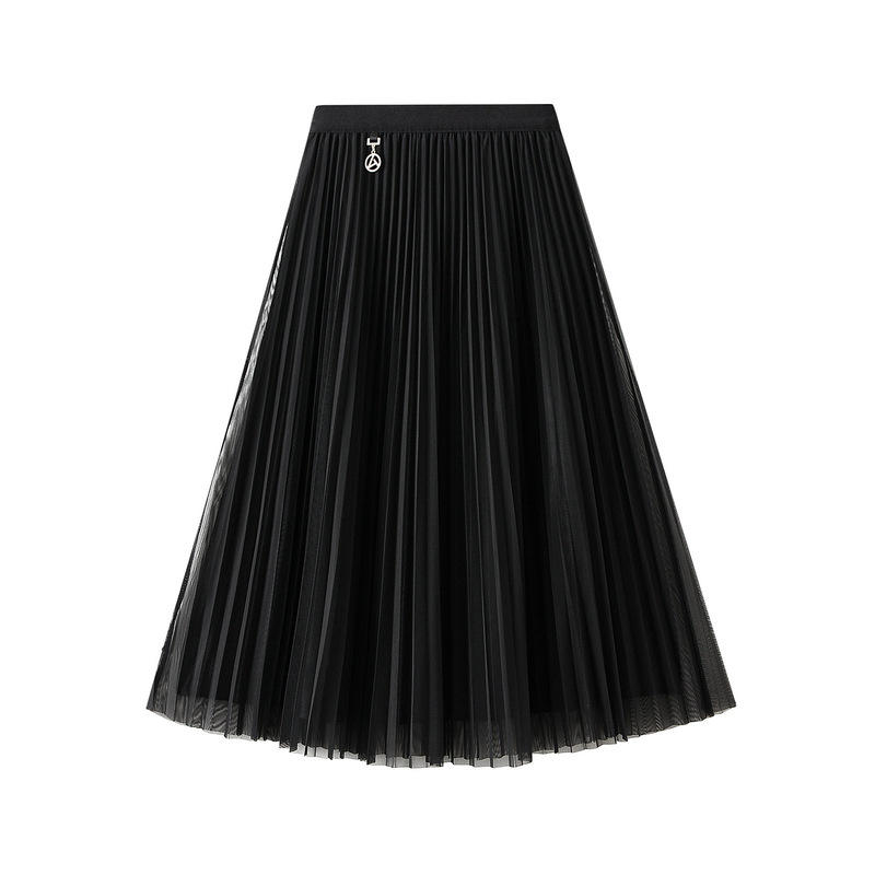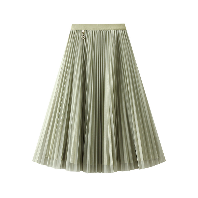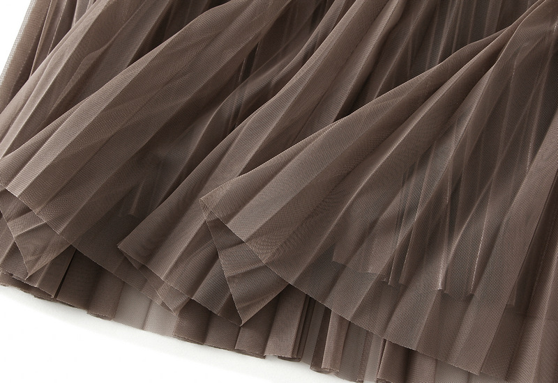 Mesh Pleated Skirt Two Sided Drape Mid Skirt Gauze Skirt