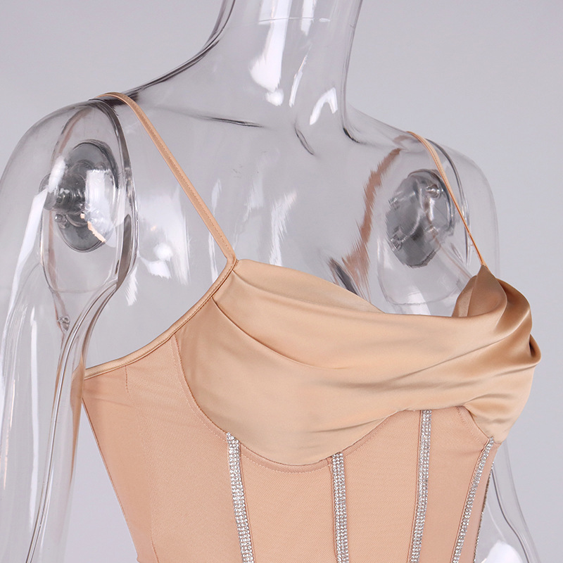 Mesh Satin Diamond-Embedded Boning Corset Boning Corset Pile Collar Camisole Top