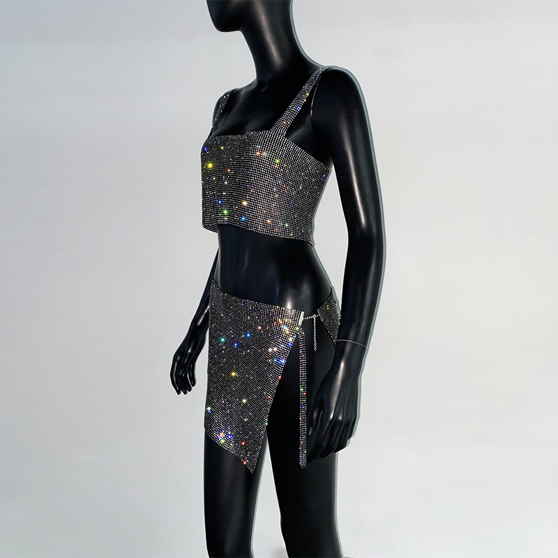 Metal Full Diamond Dress Sweet Spicy Strap Skirt Set Cami Dress