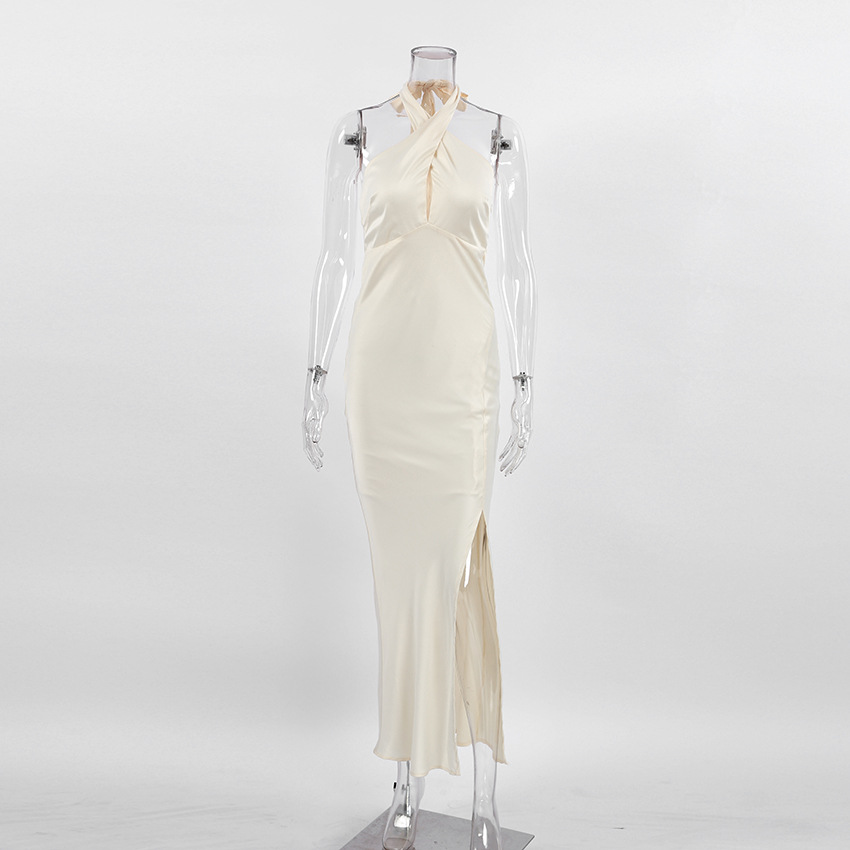Minimalist White Fishtail High Waist Slim Backless Halter Dress