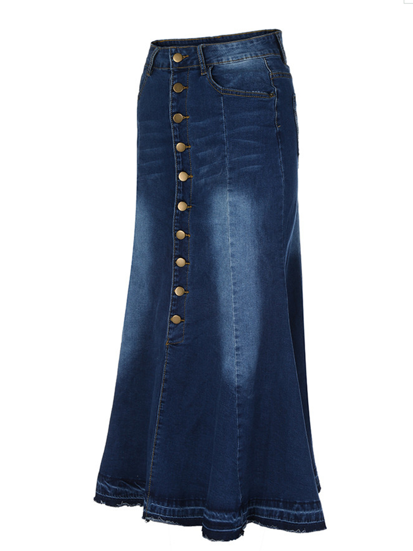 Multi Buckle Hip Fishtail Denim Long Skirts