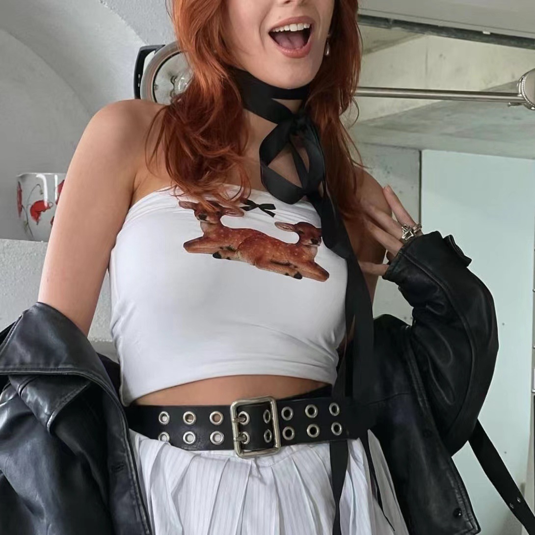 Niche Tube Top Outer Wear Printed Short Strapless Short Top