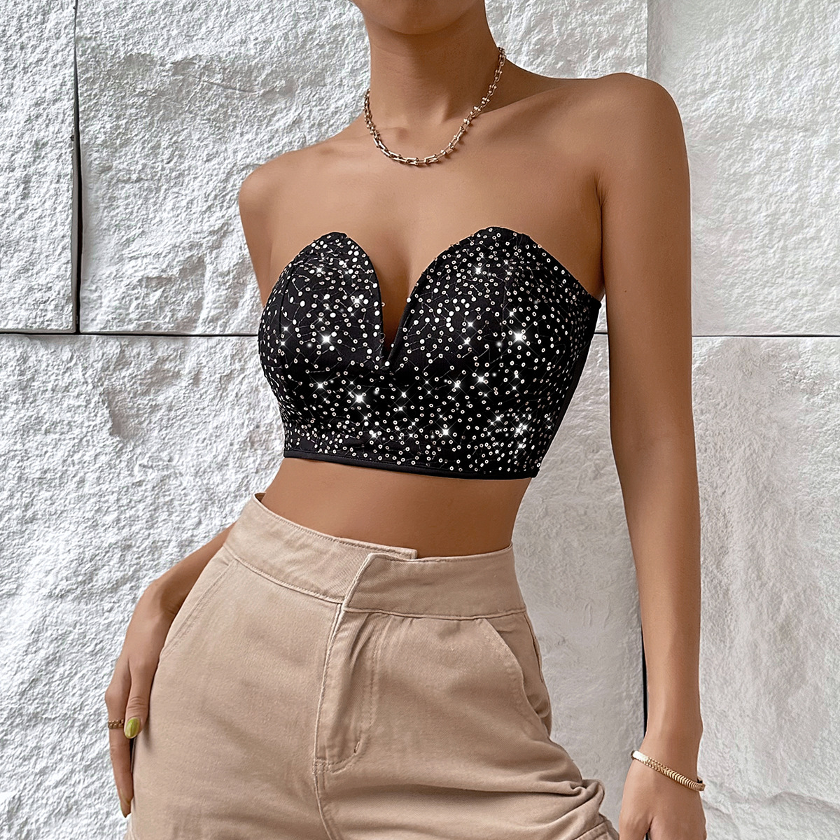 Nightclubs Street Sequ Deep V Plunge Niche Tube Top