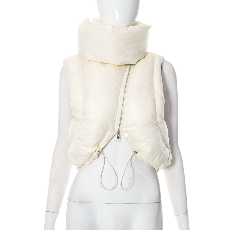 of Scarf Collar Sleeveless Zipped Cotton Padded Jacket Short Top Vest