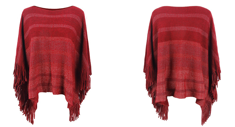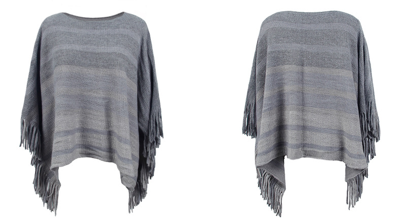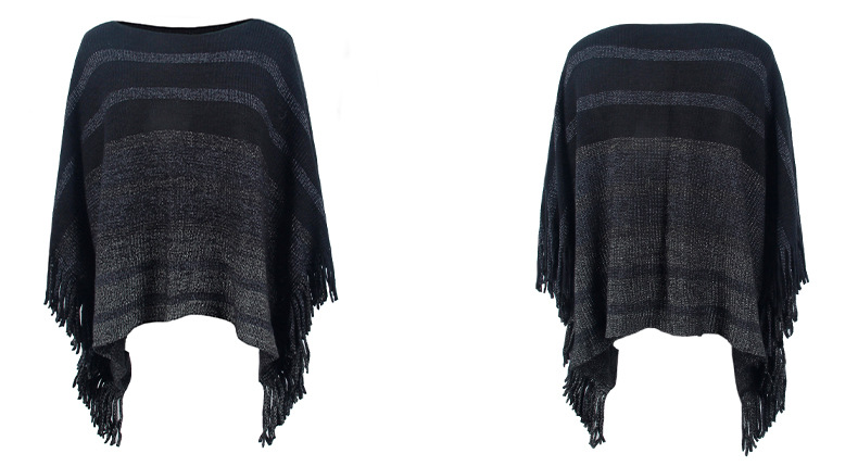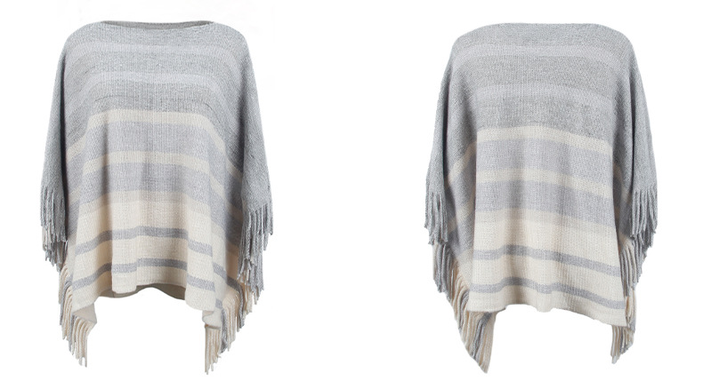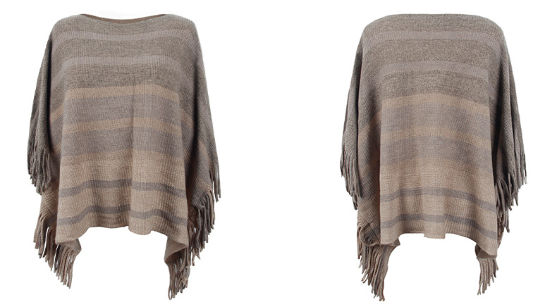 off Neck Tassel Shawl Contrast Color Striped Cape Coat