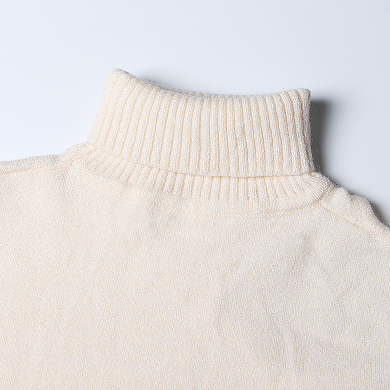 Off the Shoulder Sweater Solid Color Turtleneck Cool Long Sleeve Loose Sweater
