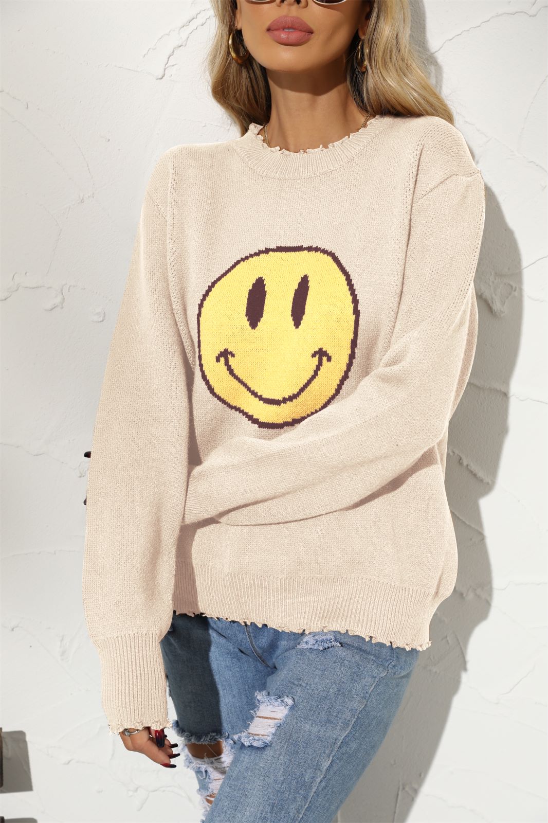 Office Cotton round Neck Loose Smiley Knitted Pullover European Sweater