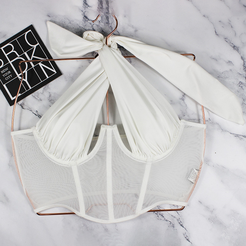 Outdoor Backless Breast Shaping Mesh Lace up Halter Wrapped Chest Tube Top