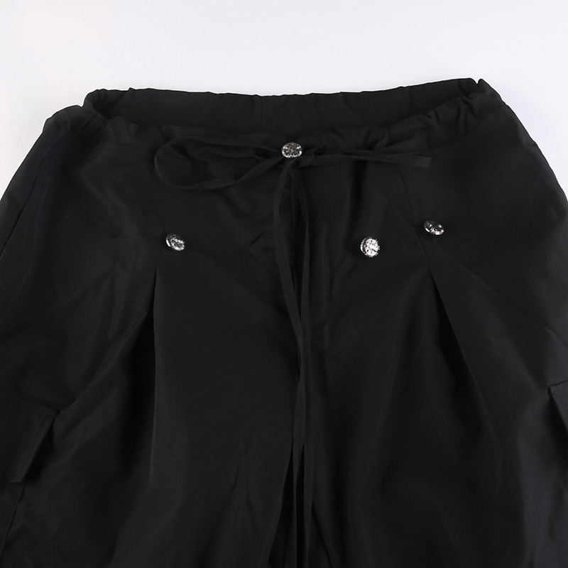 Overalls Street Shooting Oblique Belt Buckle High Waist Loose Ankle Tied Casual Trousers