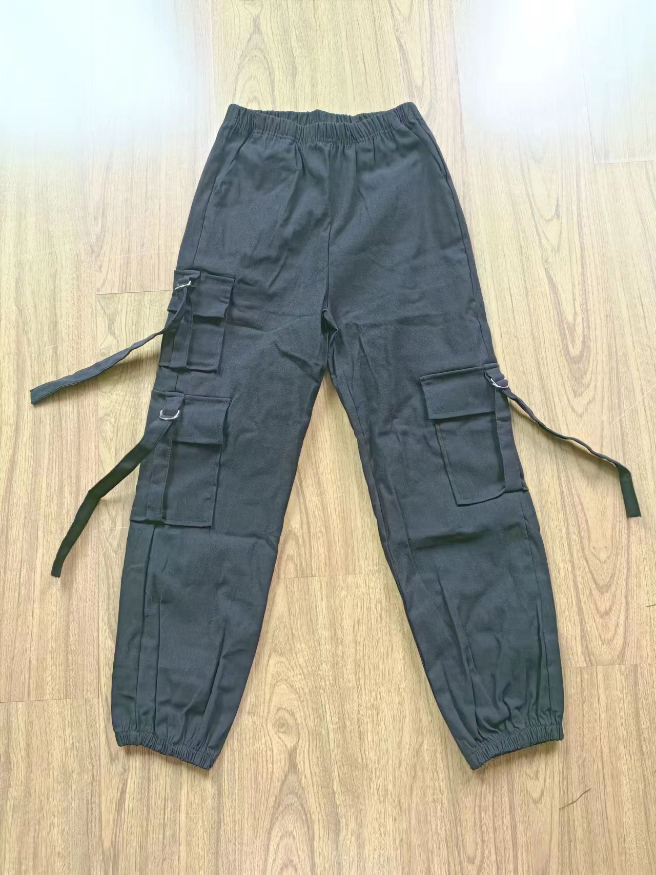 Pants Street Overalls Multi Pocket Lace up Trousers Metal Buckle Loose Straight Leg Ankle Banded Pants Trousers