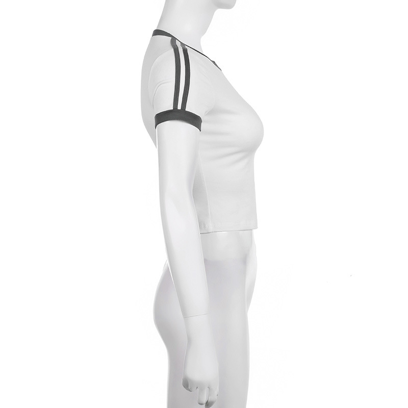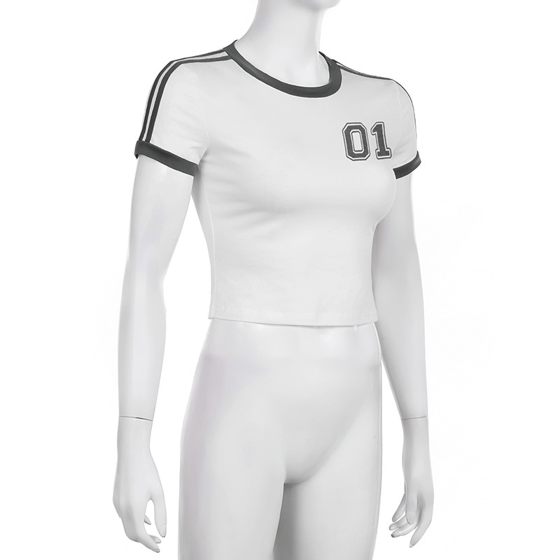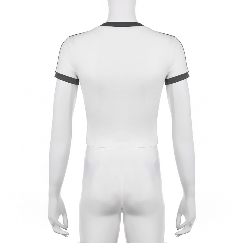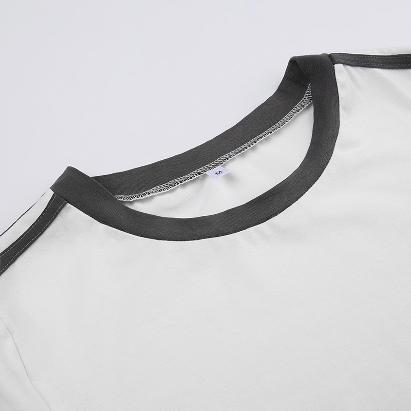 Personalized Digital Printing Contrast Color Short Sleeved T shirt Simple Slim Fit Casual Coat