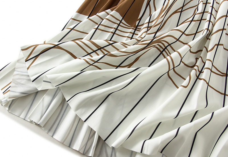 Pleated Skirt Mid Length Black White Contrast Color Irregular Asymmetric Striped Slimming Retro Long Skirt