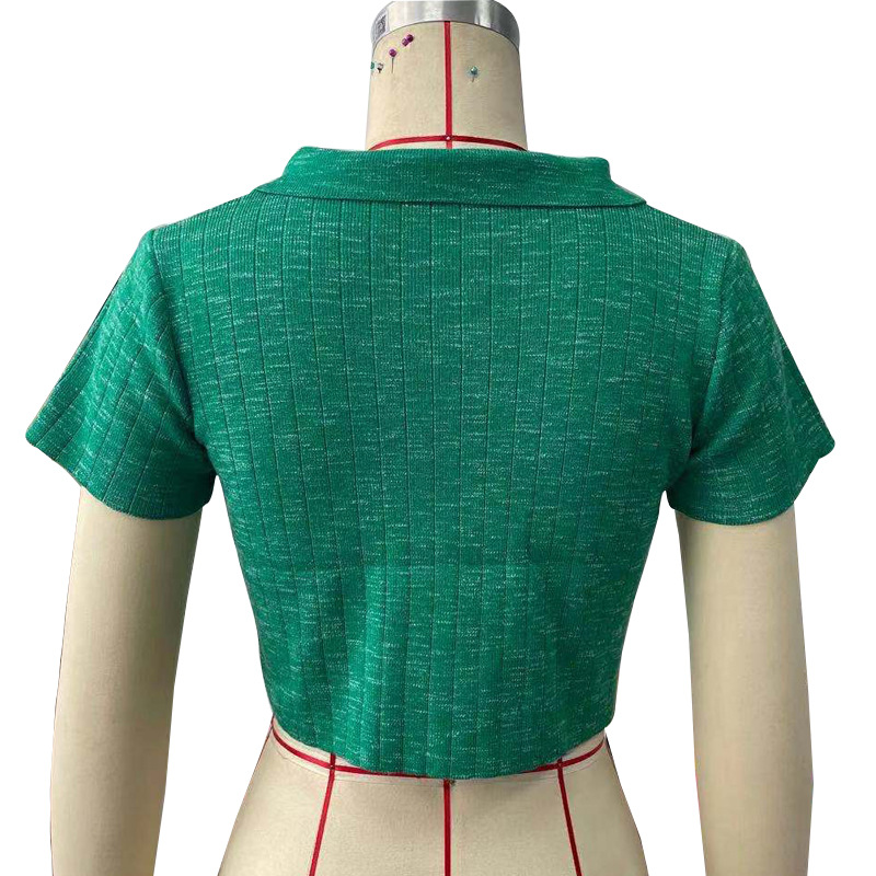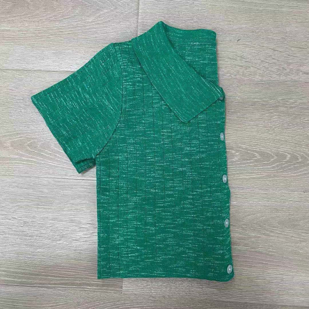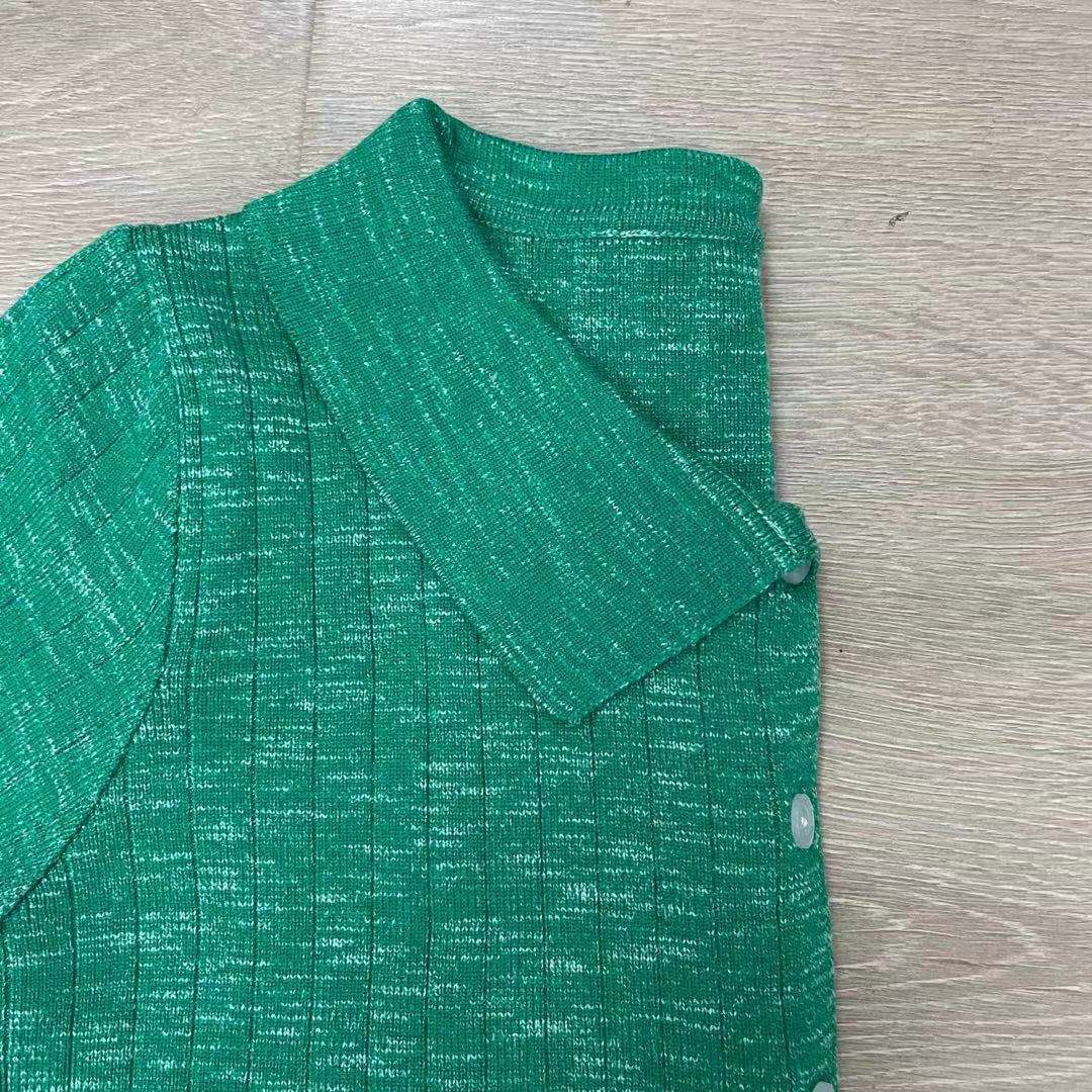 Polo Shirt Green Collared Knitwear Sweater Small Cardigan Cropped Short Sleeve Short Sleeve