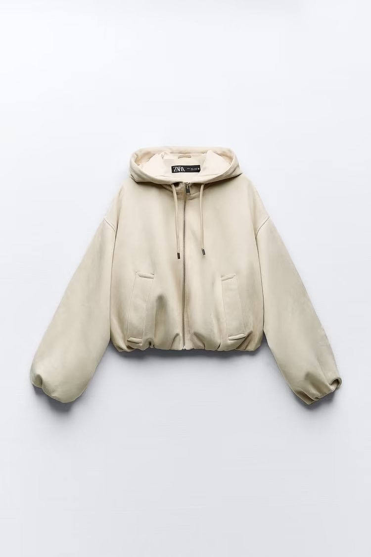 Preppy Loose Hooded Pleated Suede Texture Effect Short Jacket