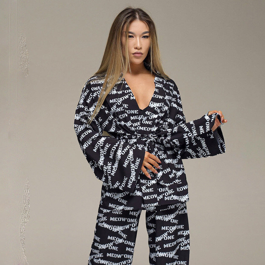 Printed Artificial Silk Casual Breathable Loose Comfortable Pajamas Homewear Outer Wear
