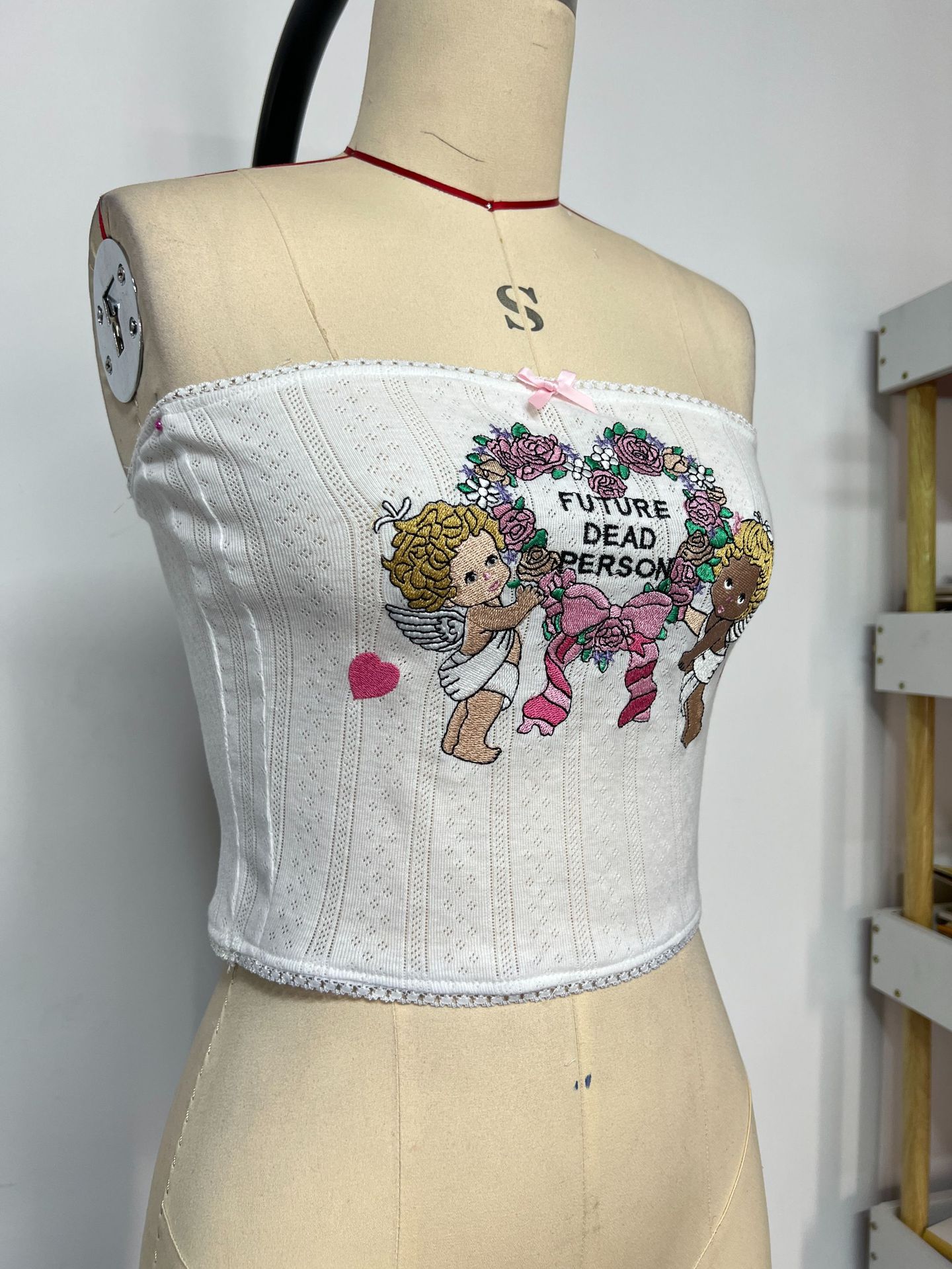 Printed Short Tube Top Outer Wear off Shoulder Cropped Top