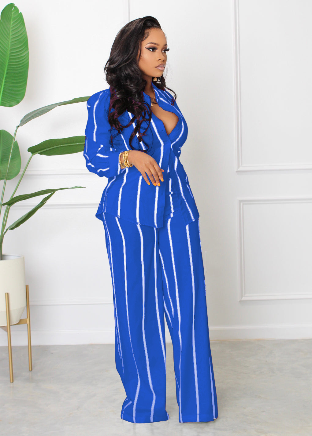 Printed Striped Shirt Outfit Two-Piece Long Sleeve Loose Straight