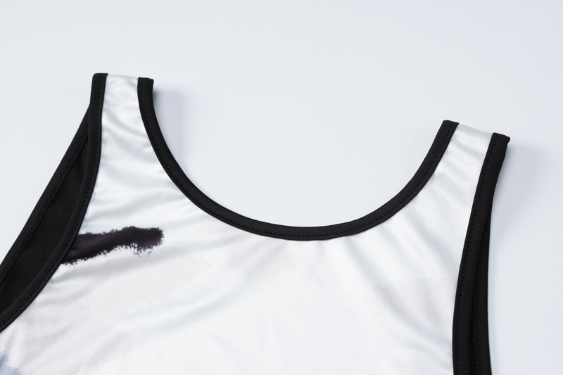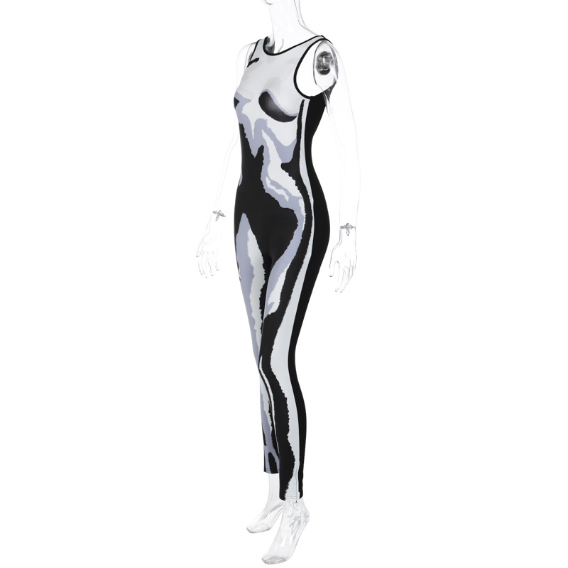 Printed Tight Slimming round Neck Sleeveless Jumpsuit