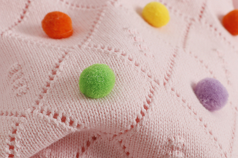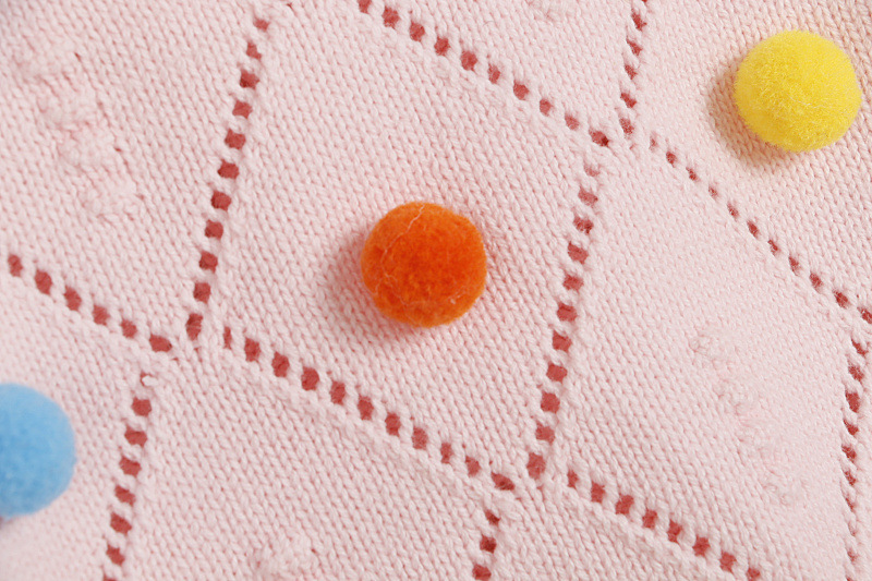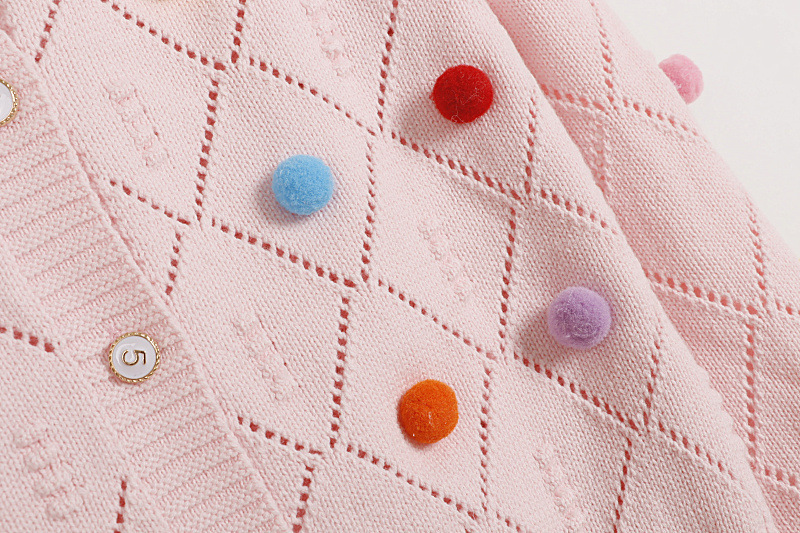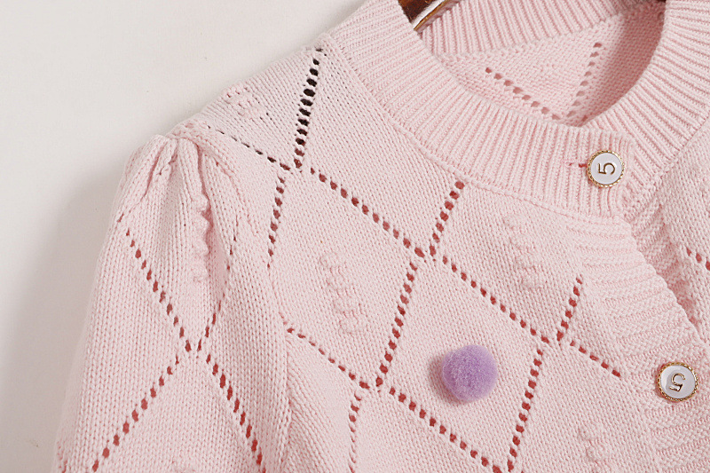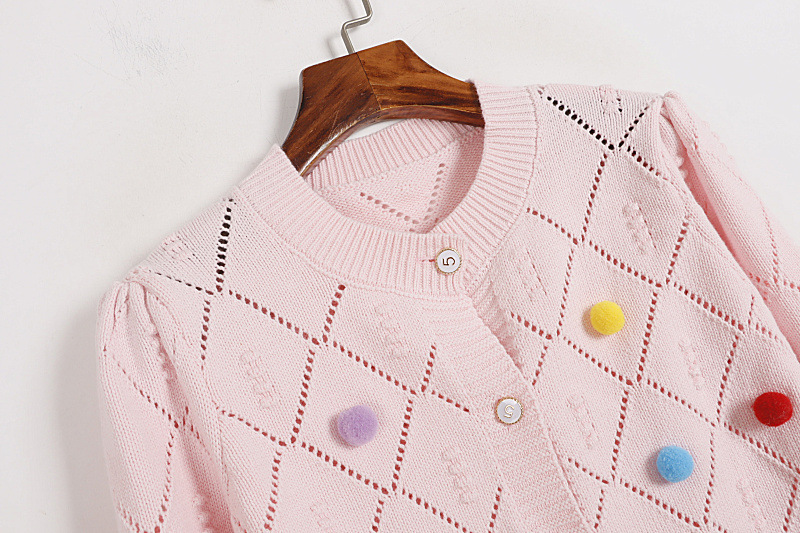 Puff Sleeve round Neck Sweater Early Preppy Color Fur Ball Single Breasted Cardigan