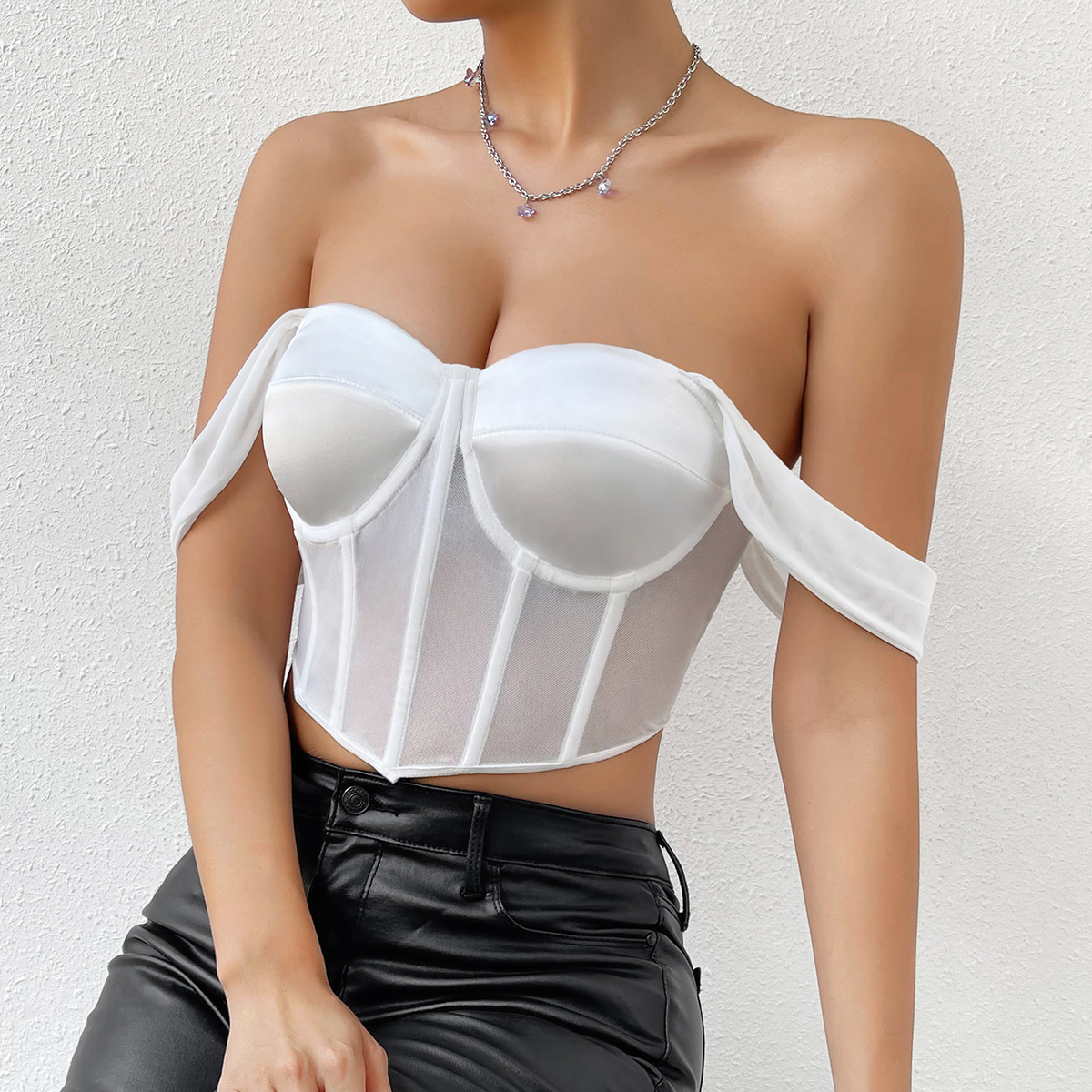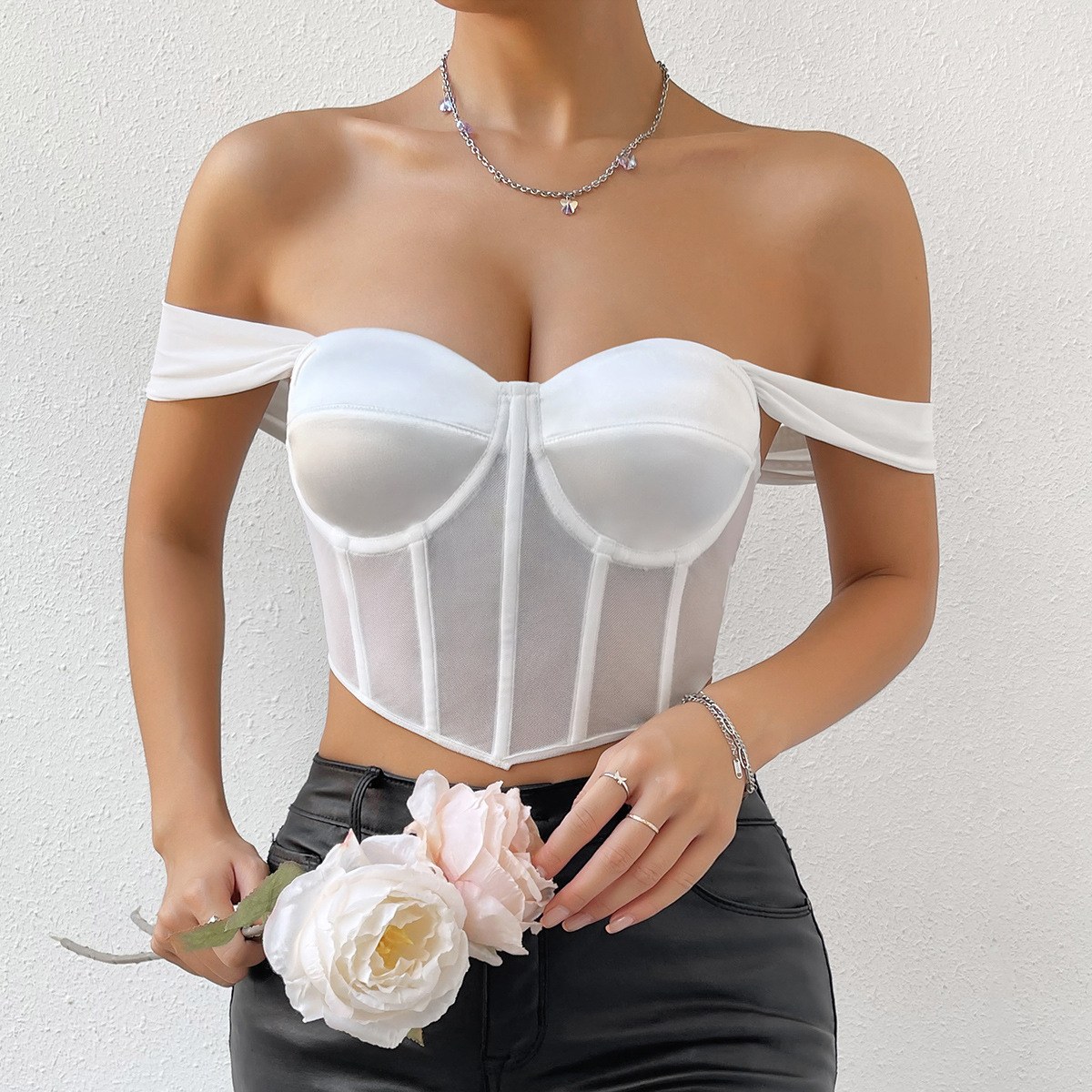 Pure White Mesh Steel Ring Boning Corset Top High Grade Waistcoat Vest