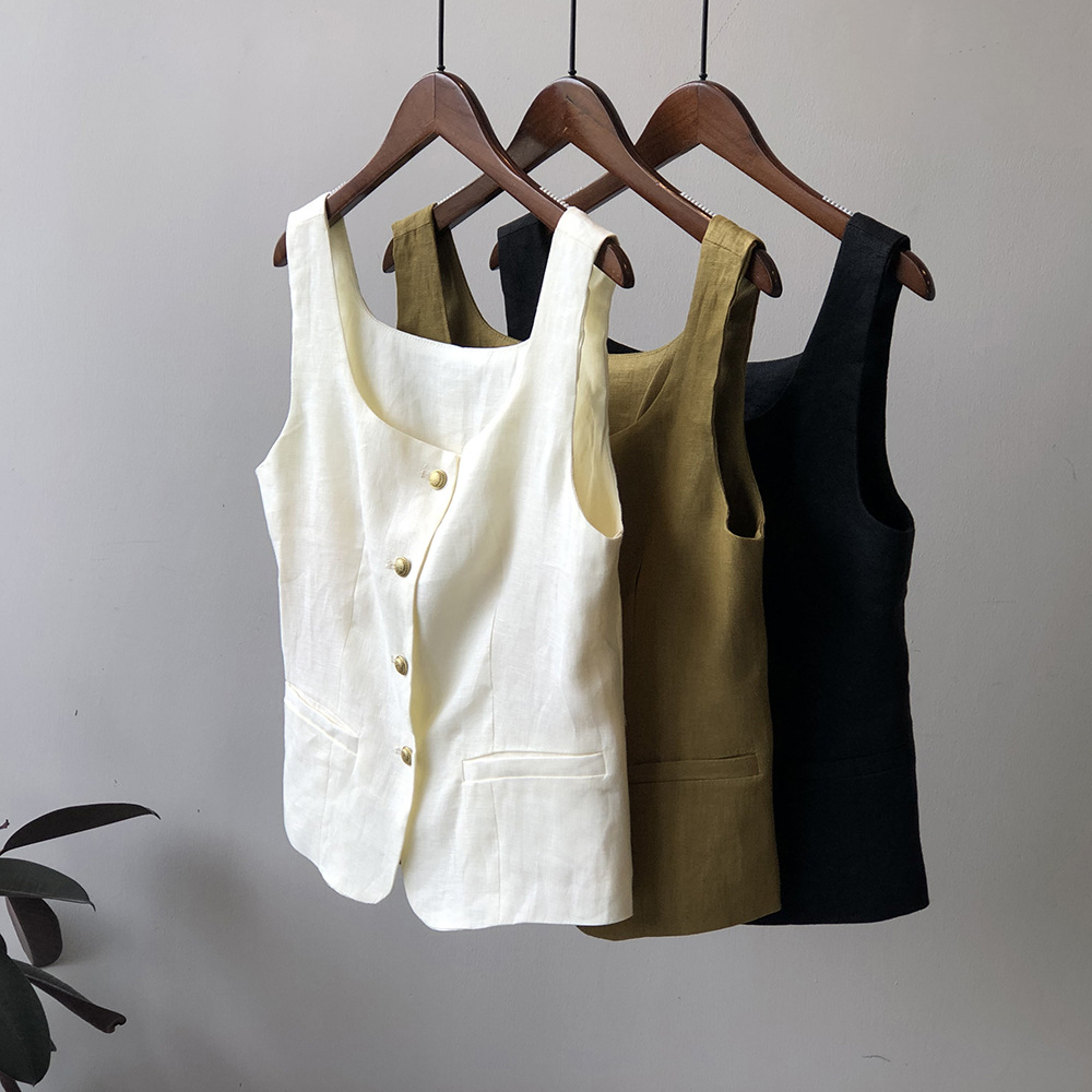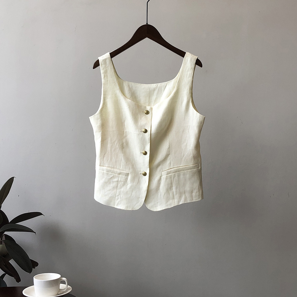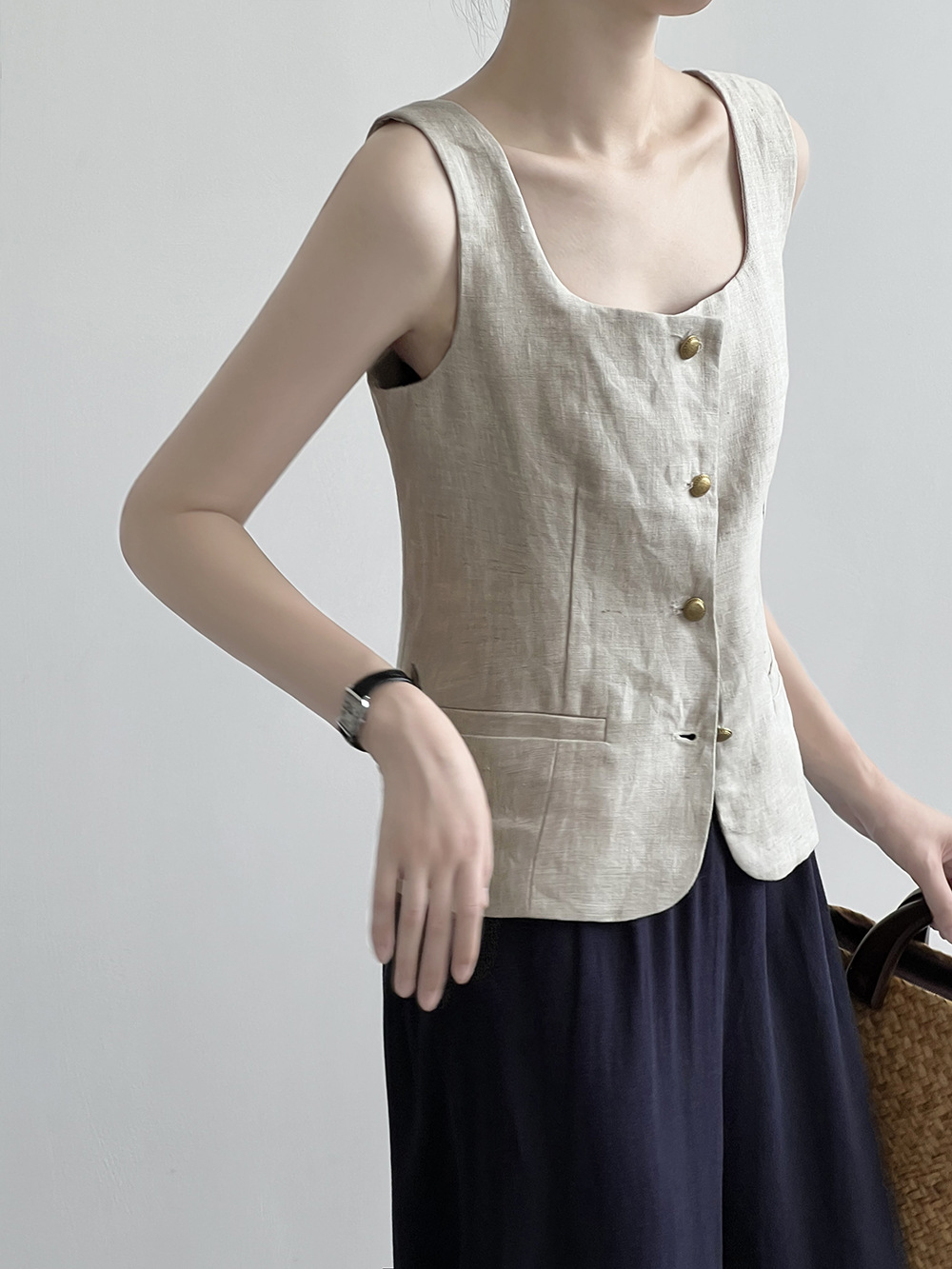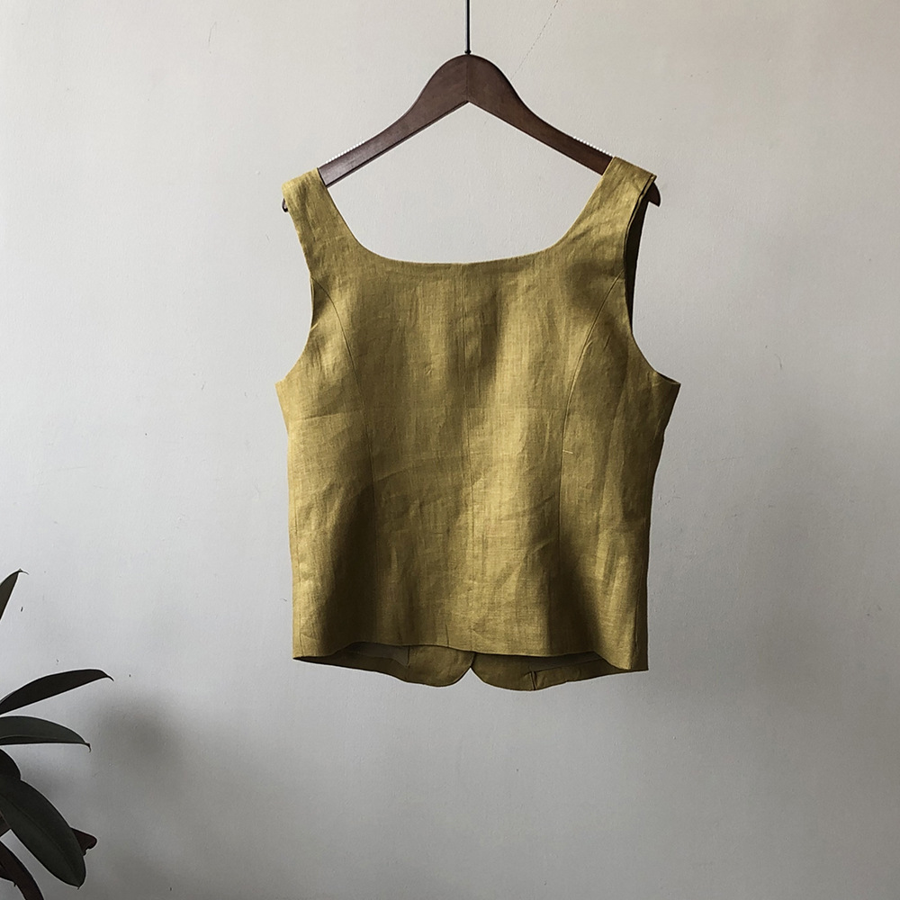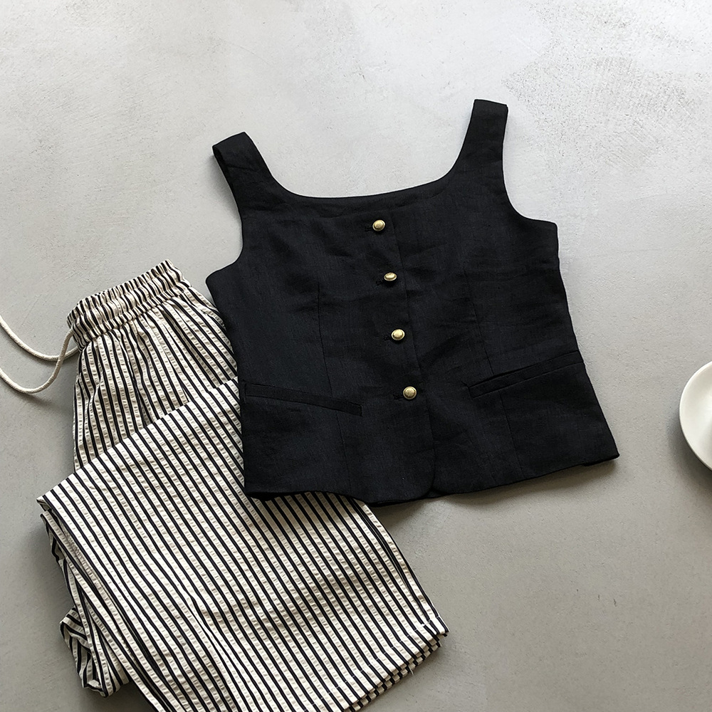 Retro Linen Vest-Interest Square Collar Sleeveless Short Top