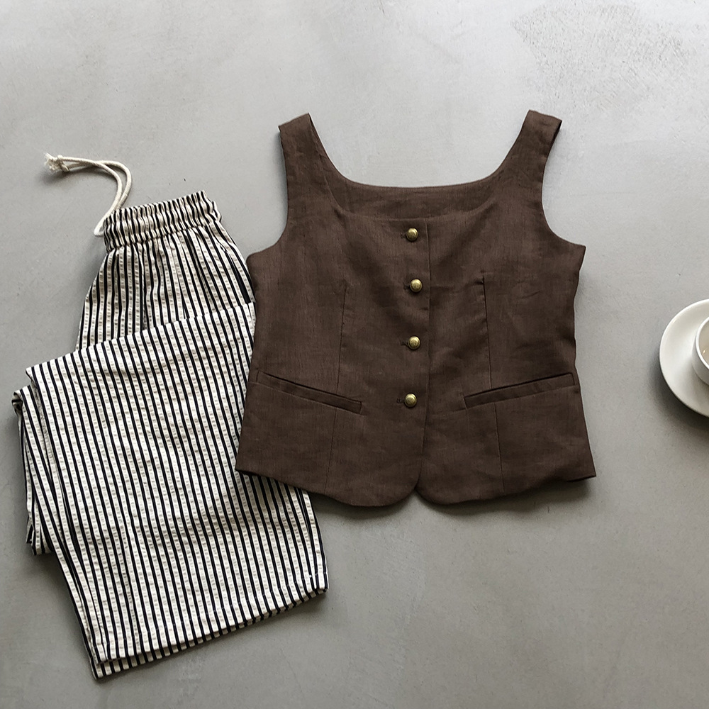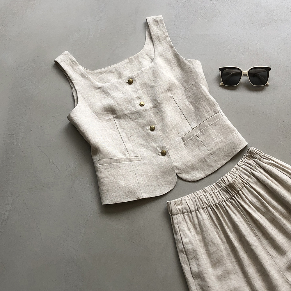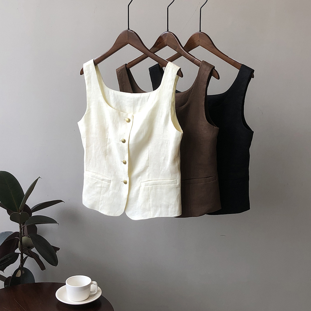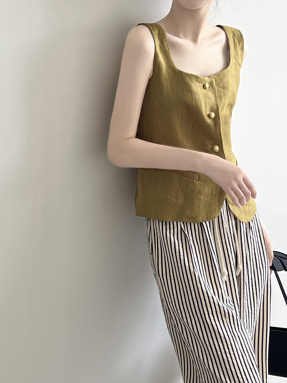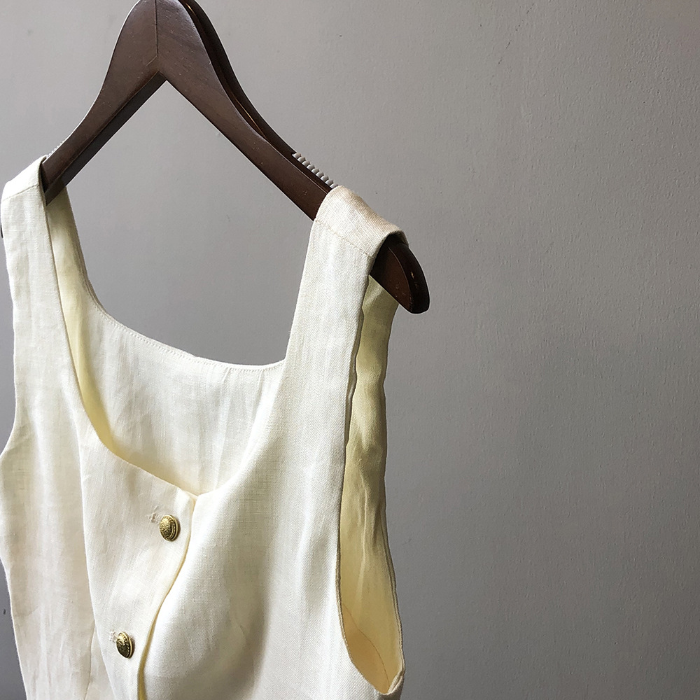 Retro Linen Vest-Interest Square Collar Sleeveless Short Top