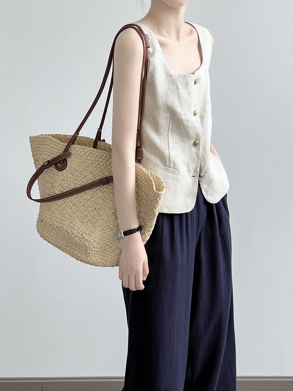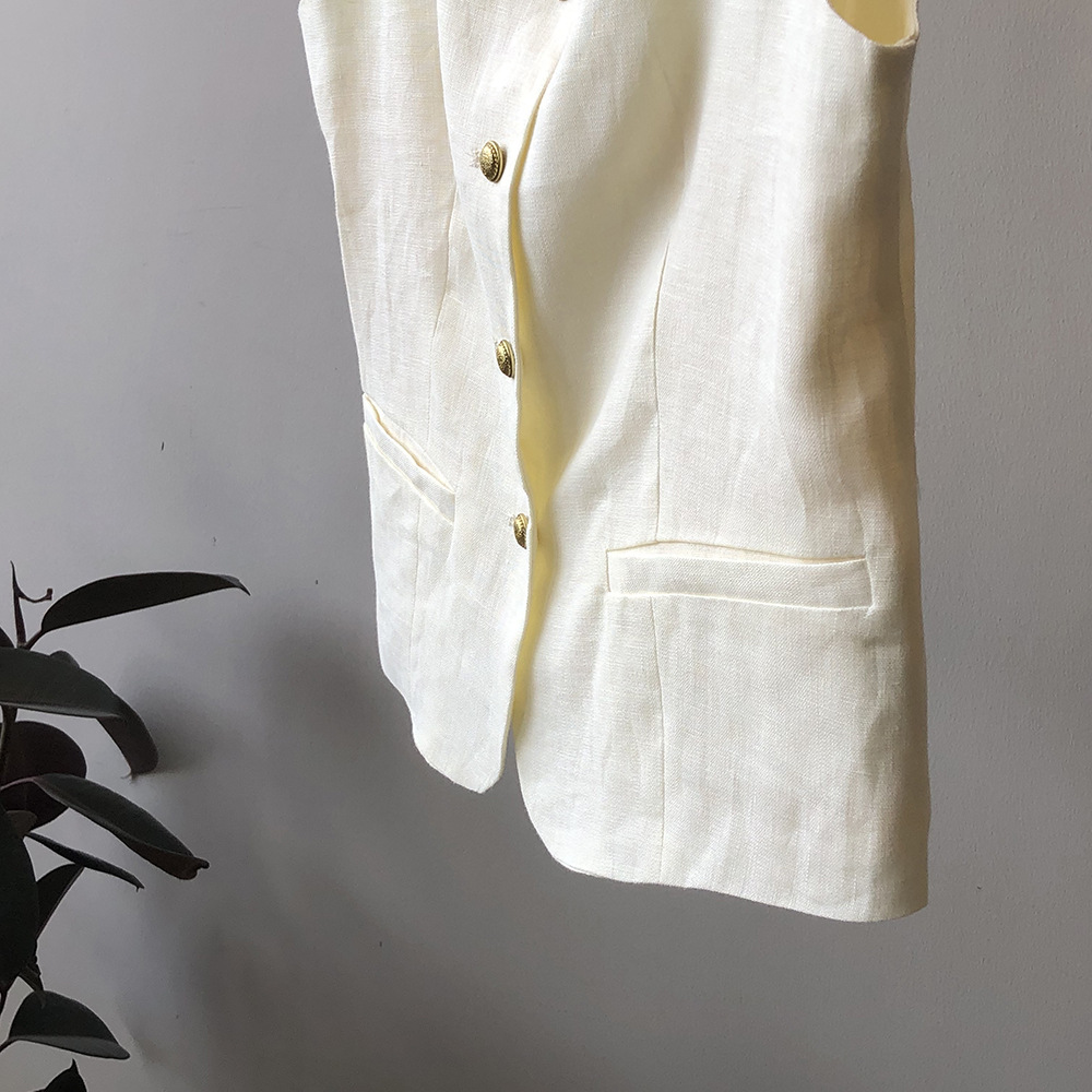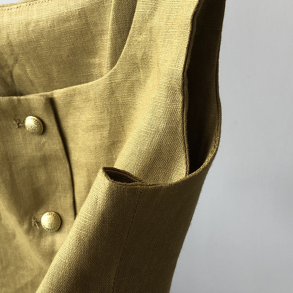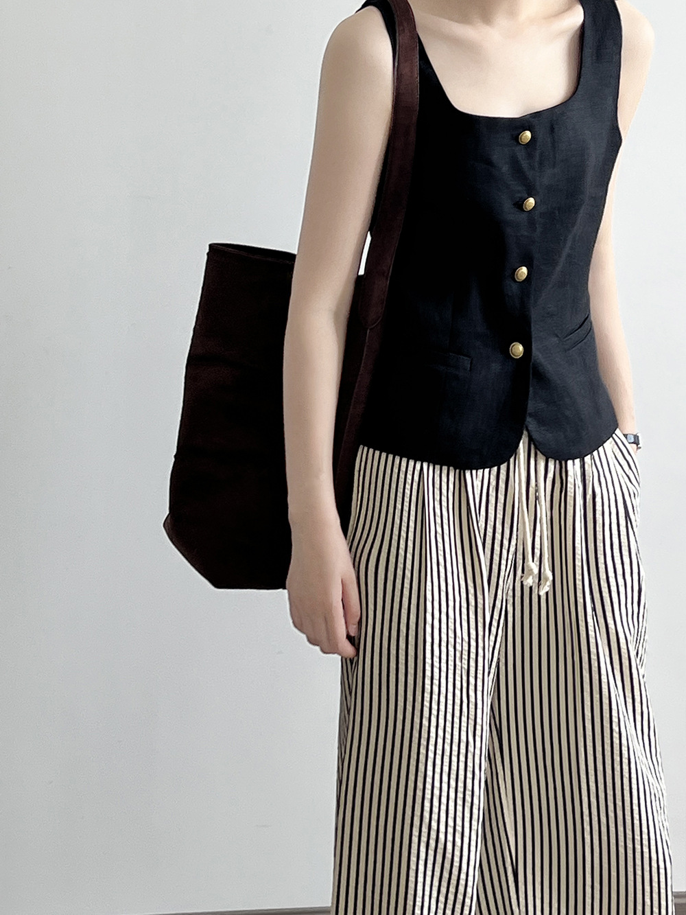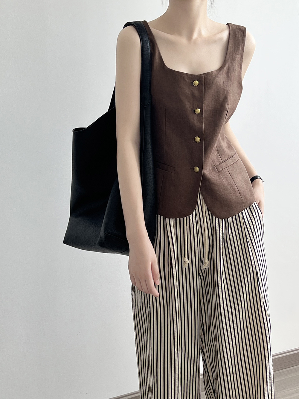 Retro Linen Vest-Interest Square Collar Sleeveless Short Top