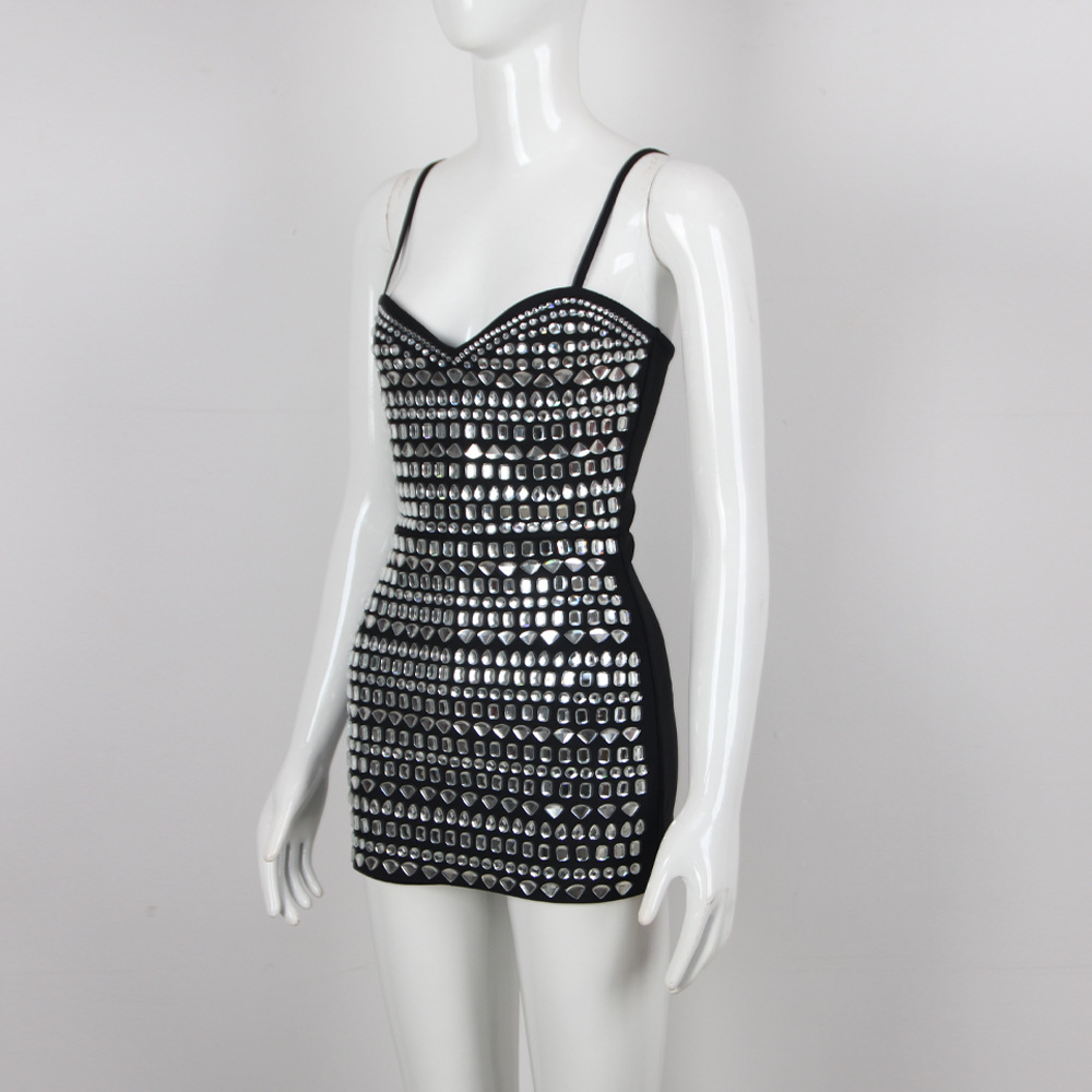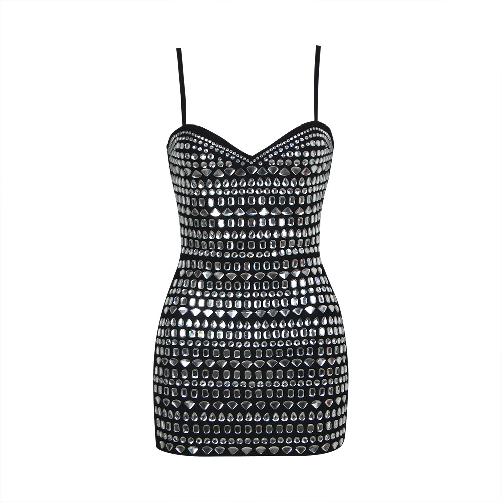 Rhinestone Strap Short Dress High End Bandage One Piece Dress
