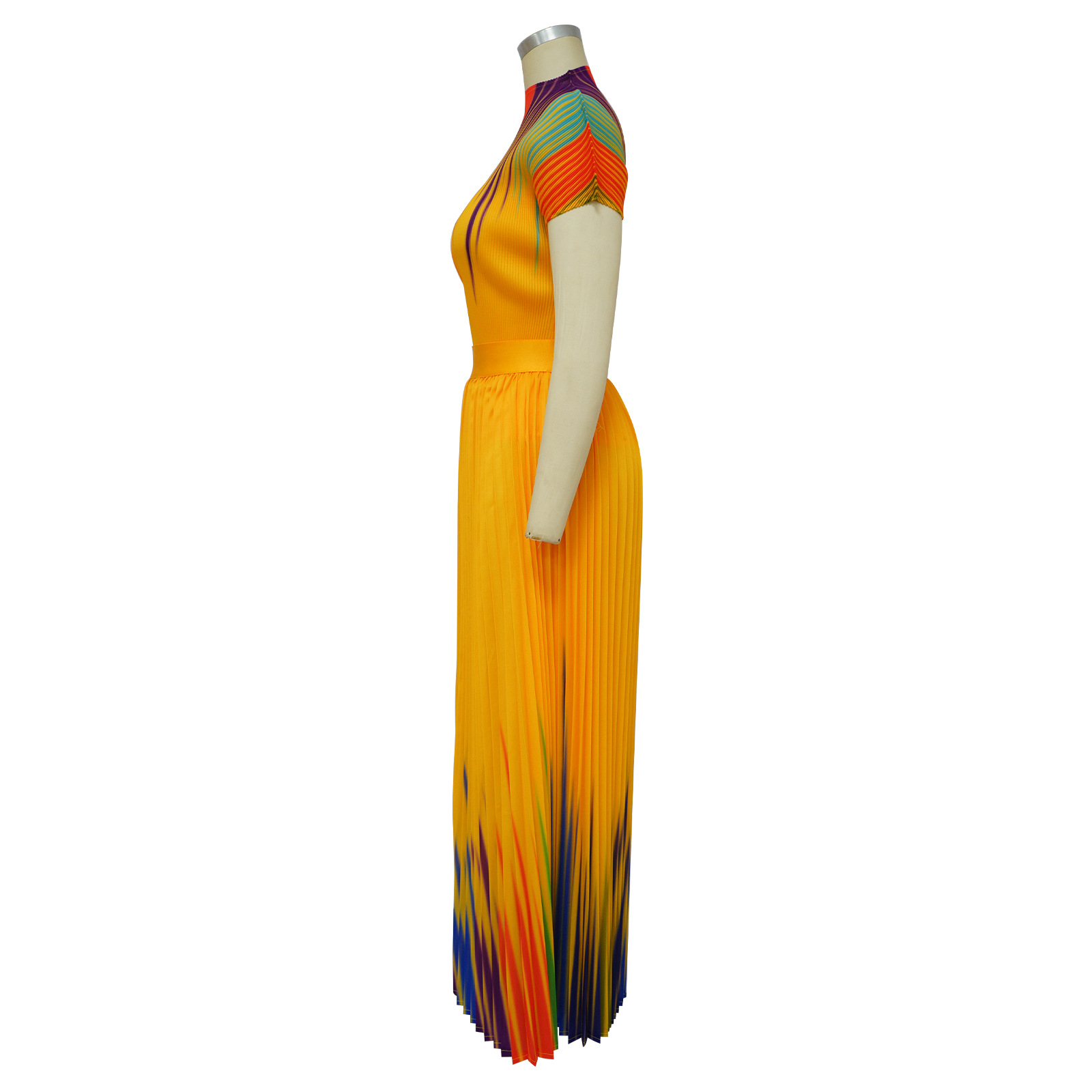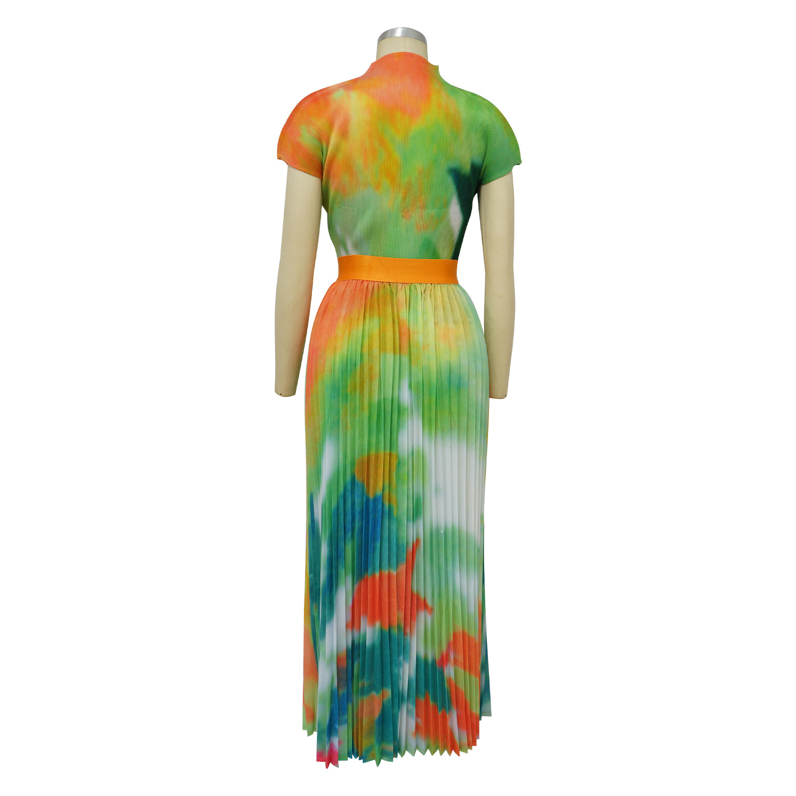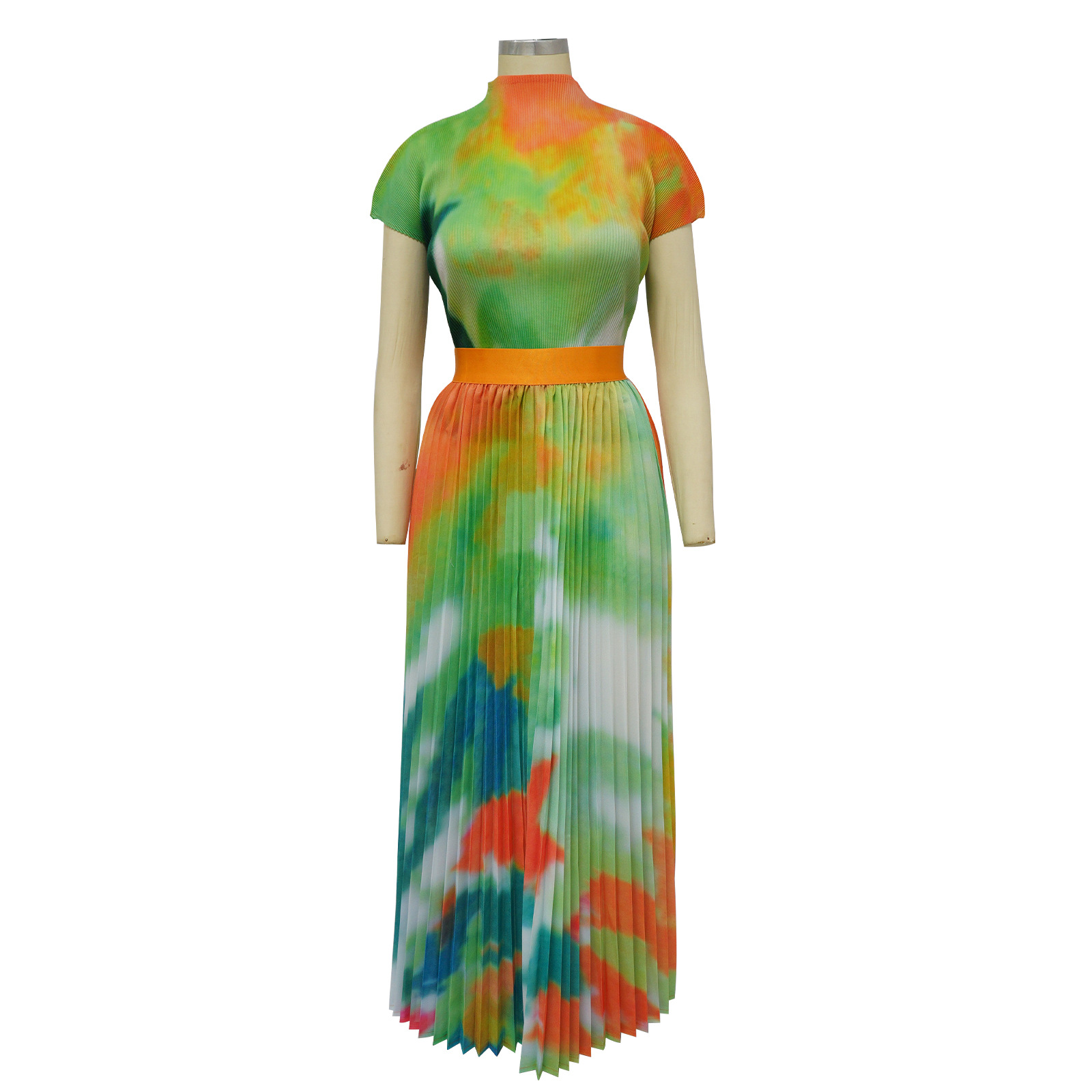 Sanzhai Round Neck Short Sleeve Printed Pleated Skirt Set