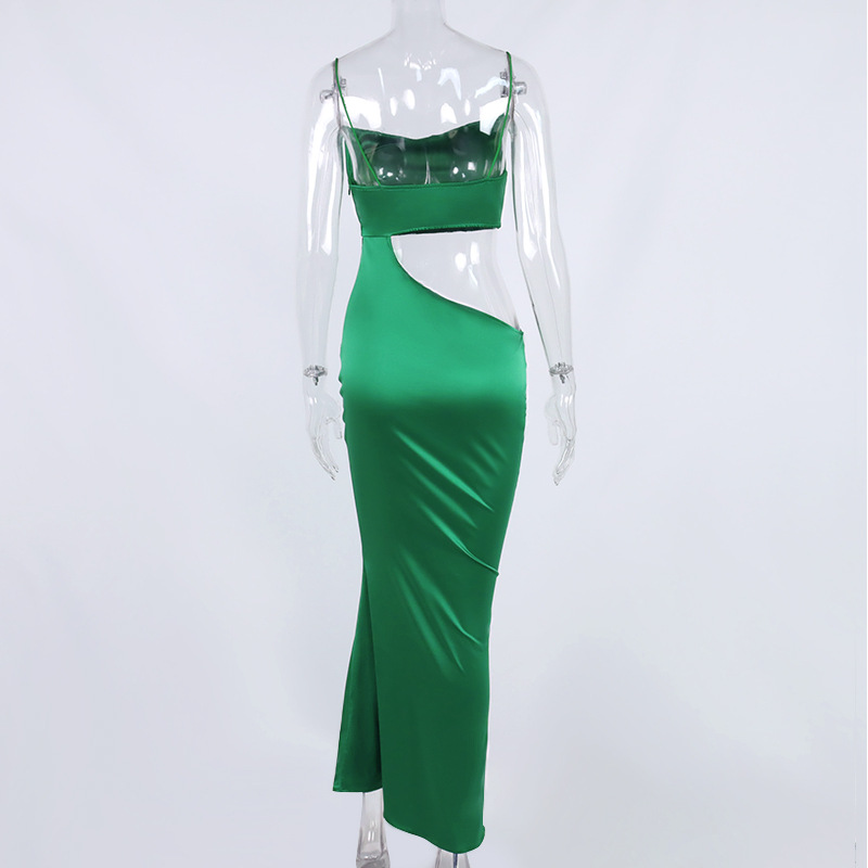 Satin Dress Hollow Out Cutout Backless Fishtail Sheath Dress Cami Dress