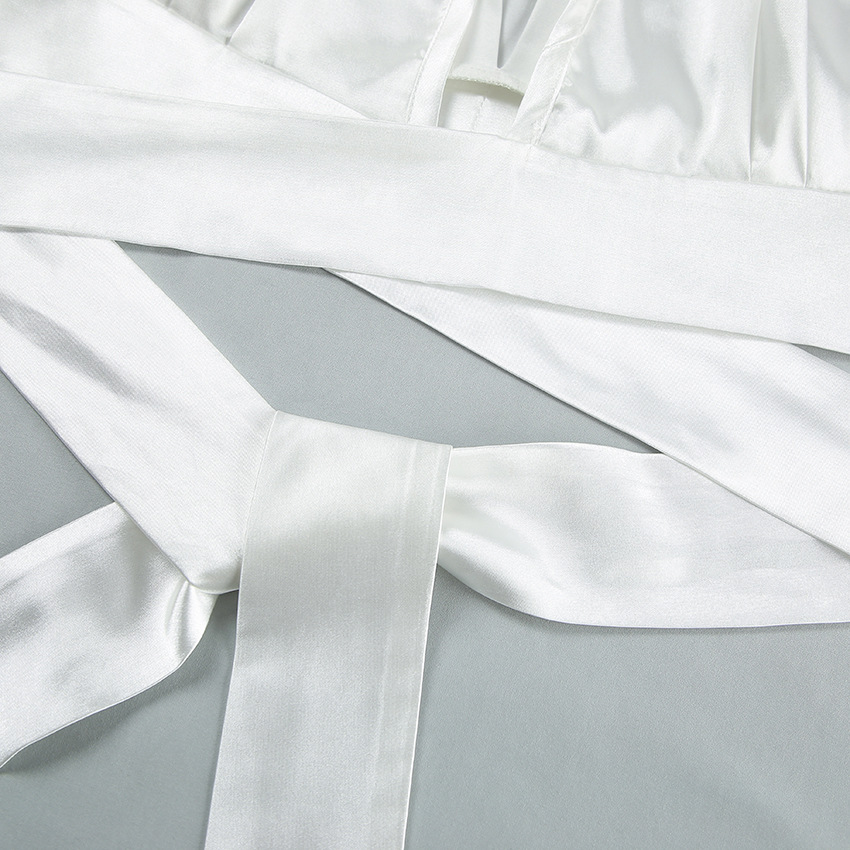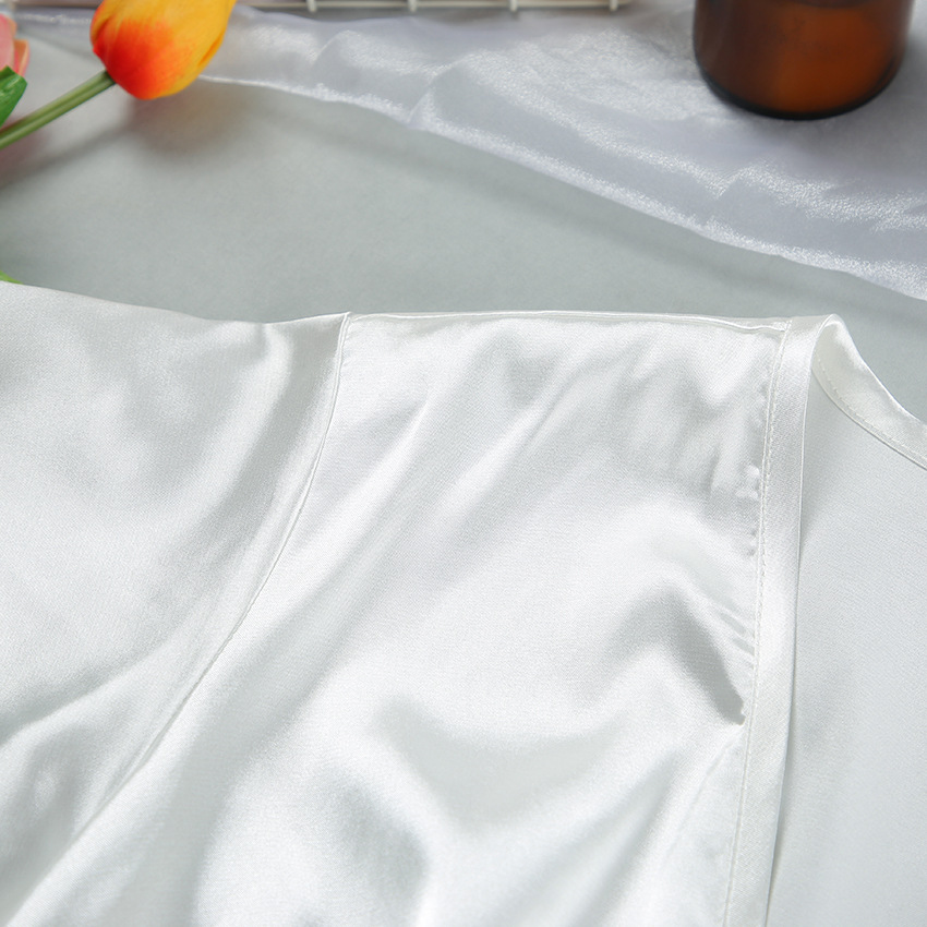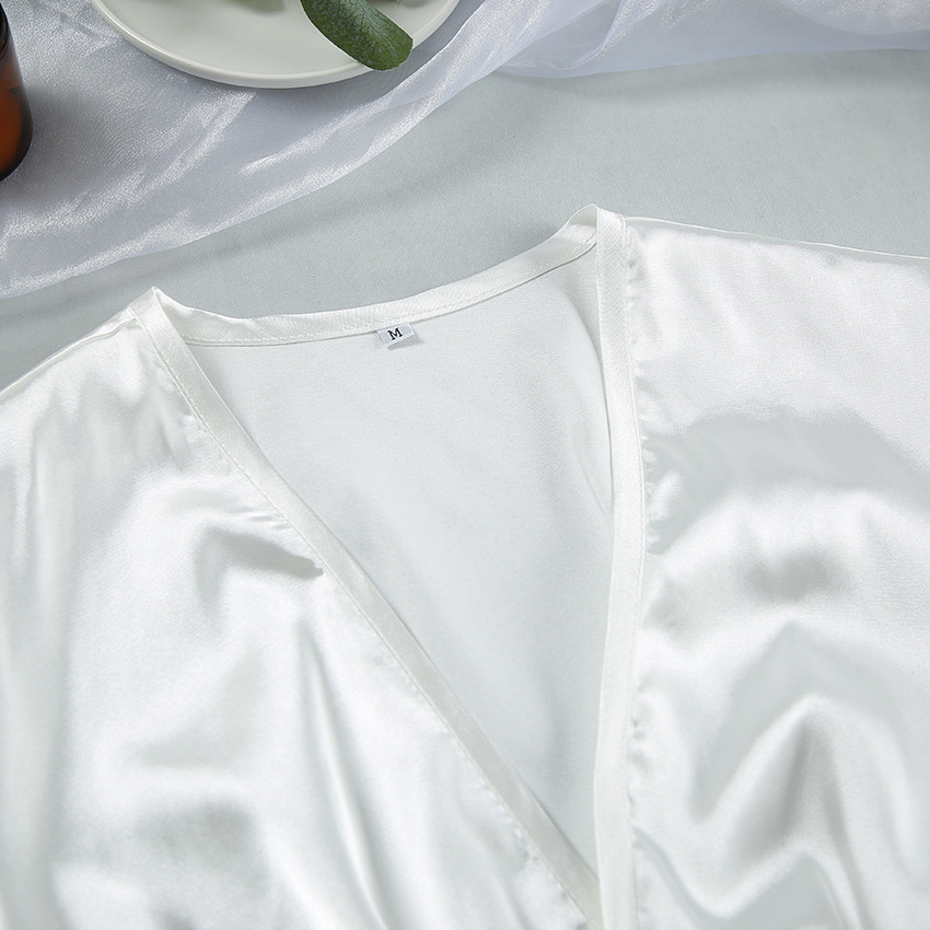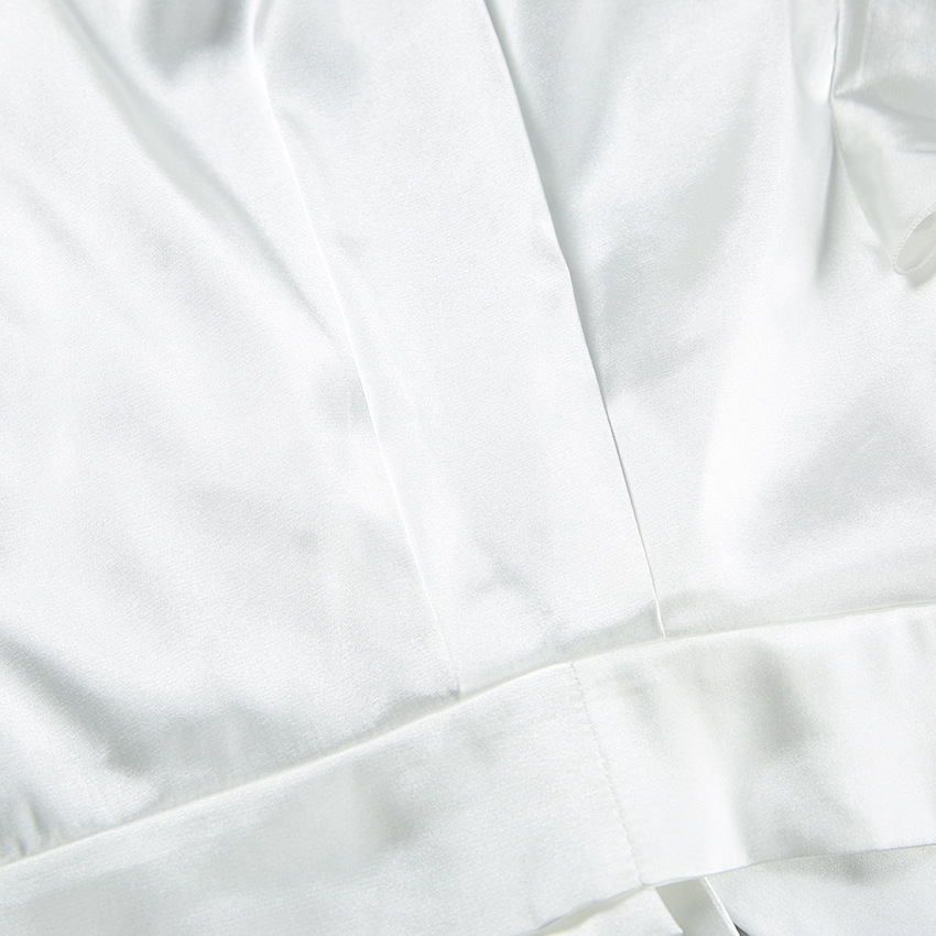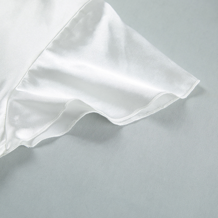 Satin Solid Color Pajamas Two Piece Lotus Edge Short Sleeved Pantskirt Lace up Home Wear
