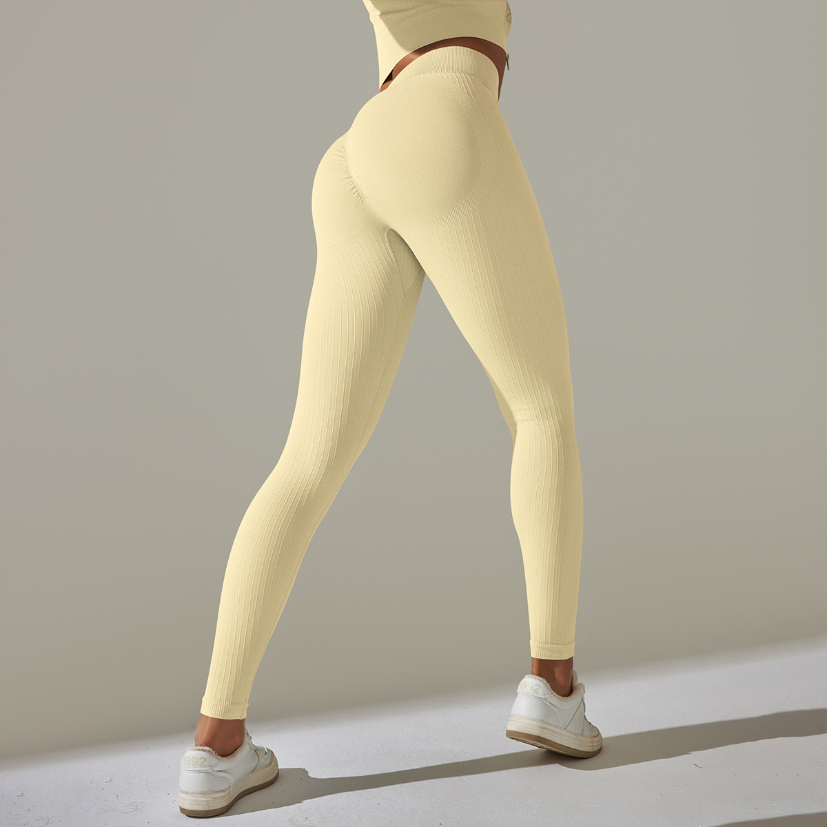 Seamless Knitted Peach Hip Raise Solid Color Tight High Waist Yoga Pants Sports Running Fitness Pants