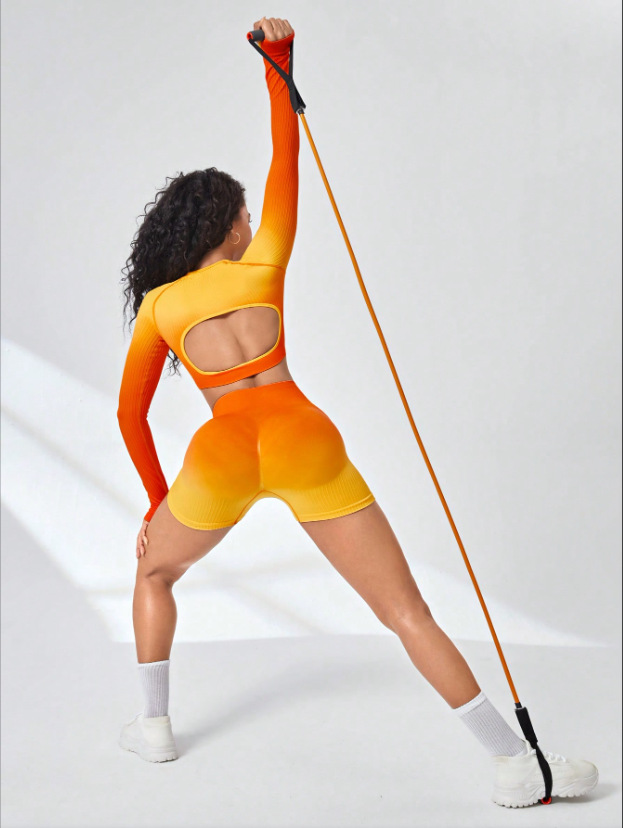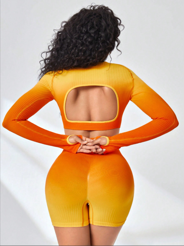 Seamless Thread Solid Color Beauty Back Yoga Two Piece Sports Running Fitness Yoga Suit