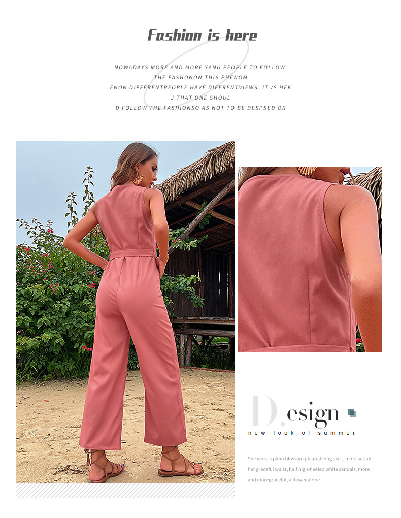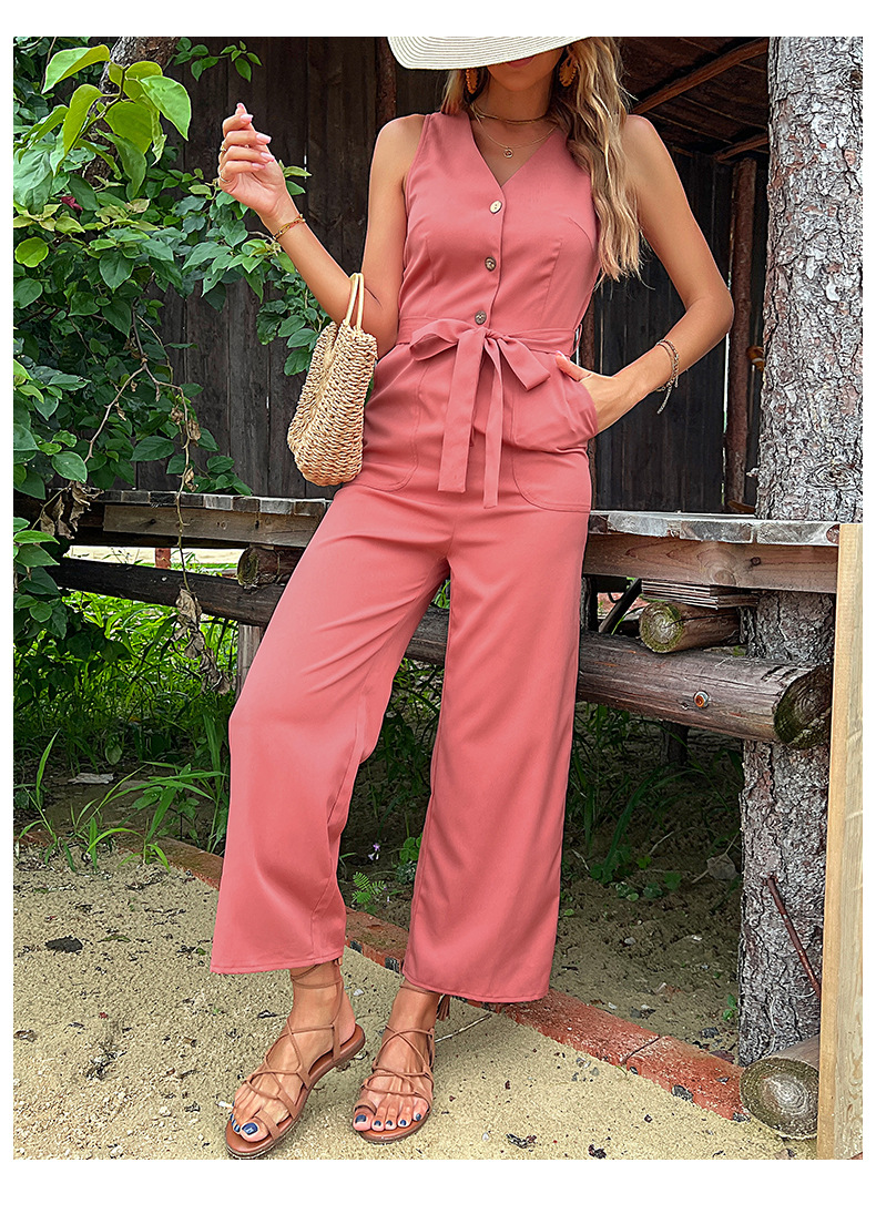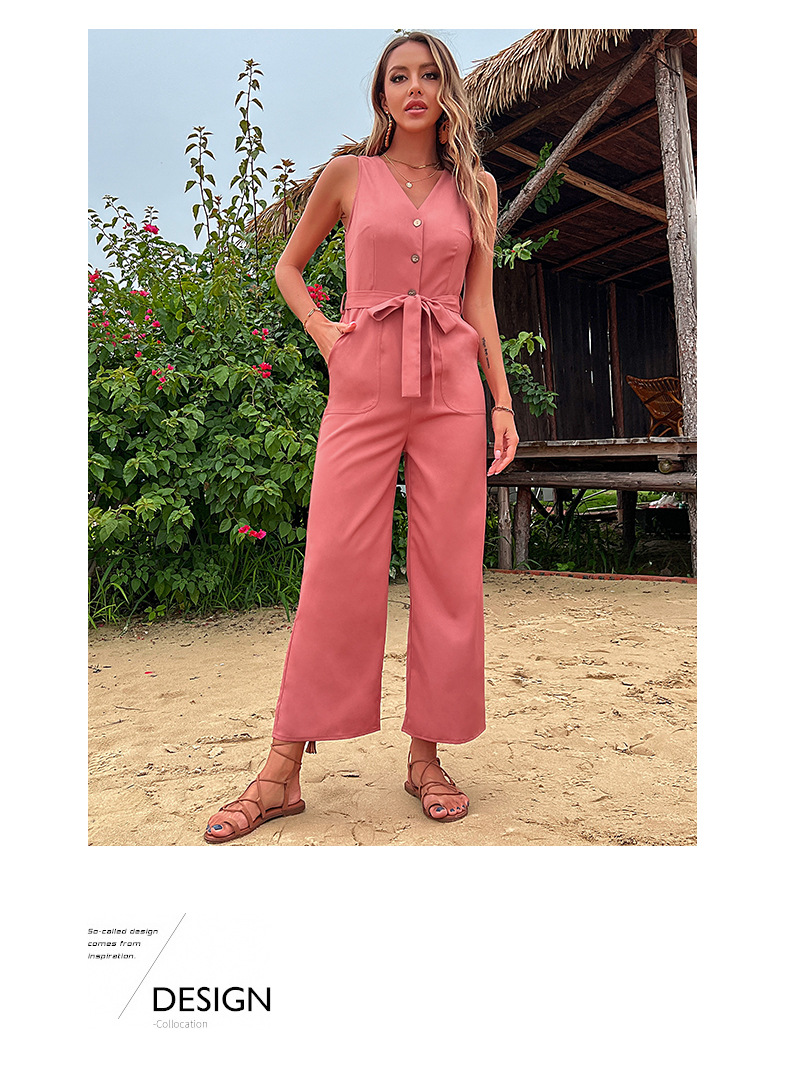 Seaside Vacation Sleeveless Casual Lace up Red Jumpsuit