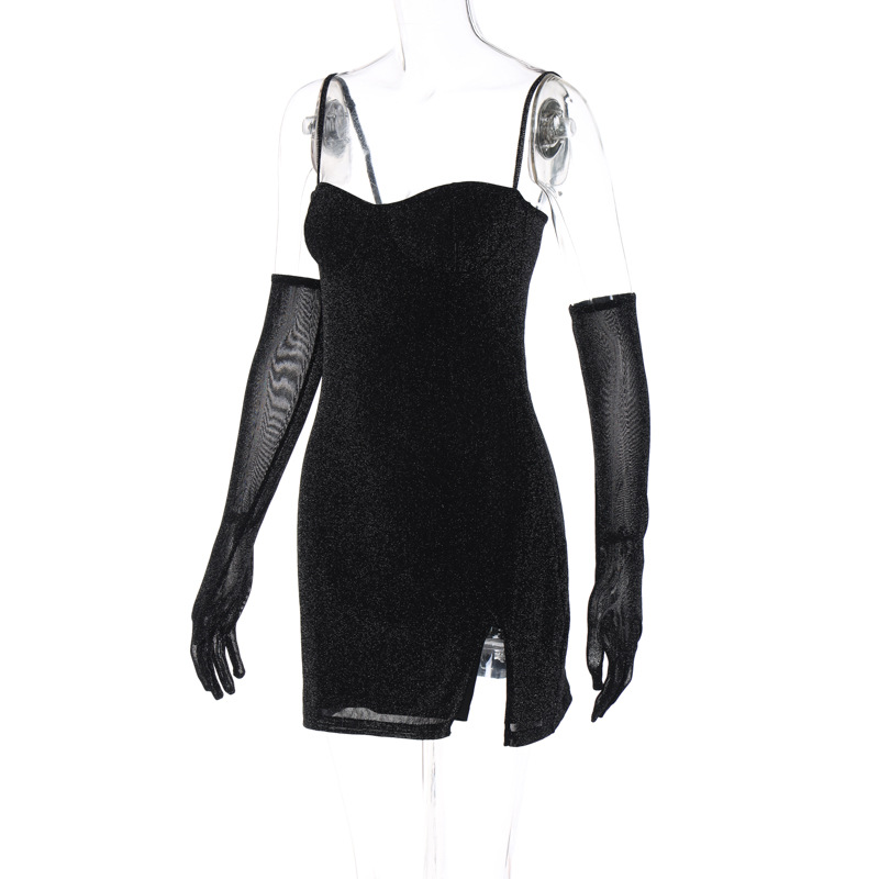 Shiny Long Sleeves Slip Dress Elegant Slim Dress
