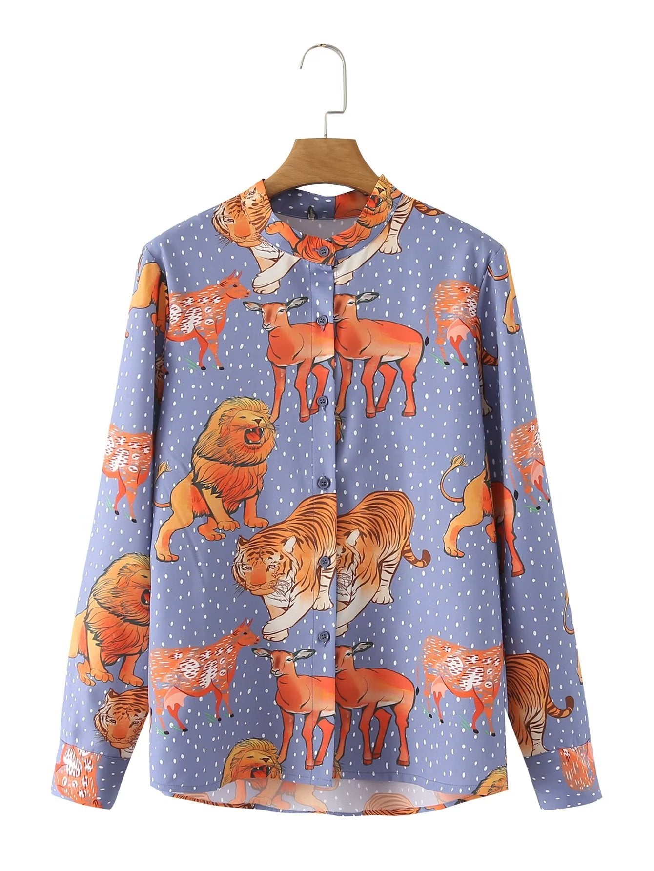 Shirt Elegant Printed Cardigan Single Breasted Long Sleeve Shirt