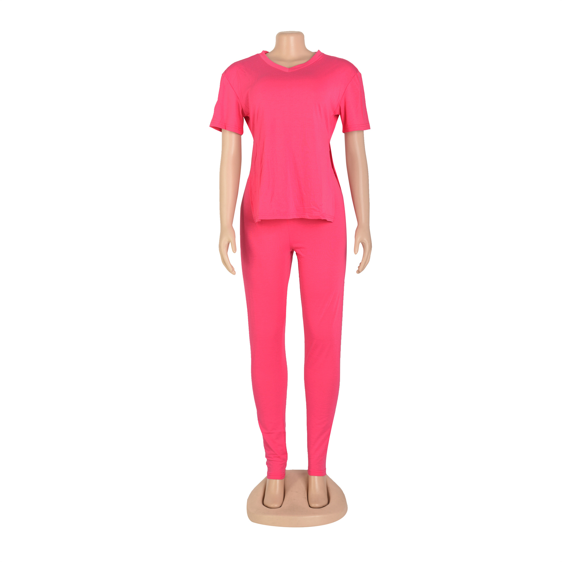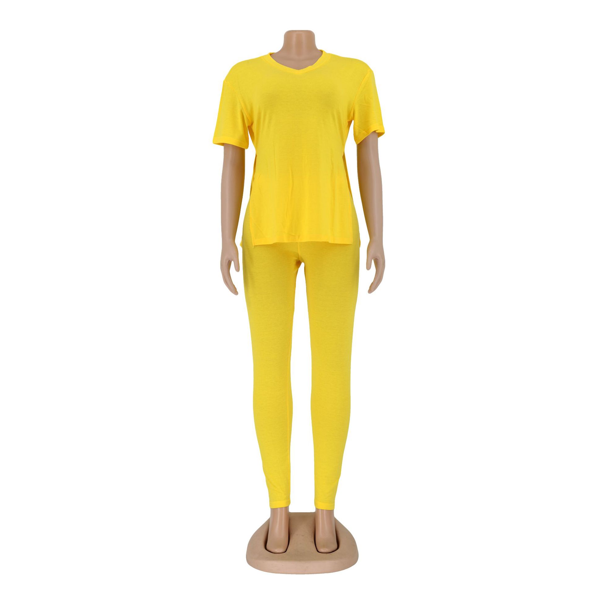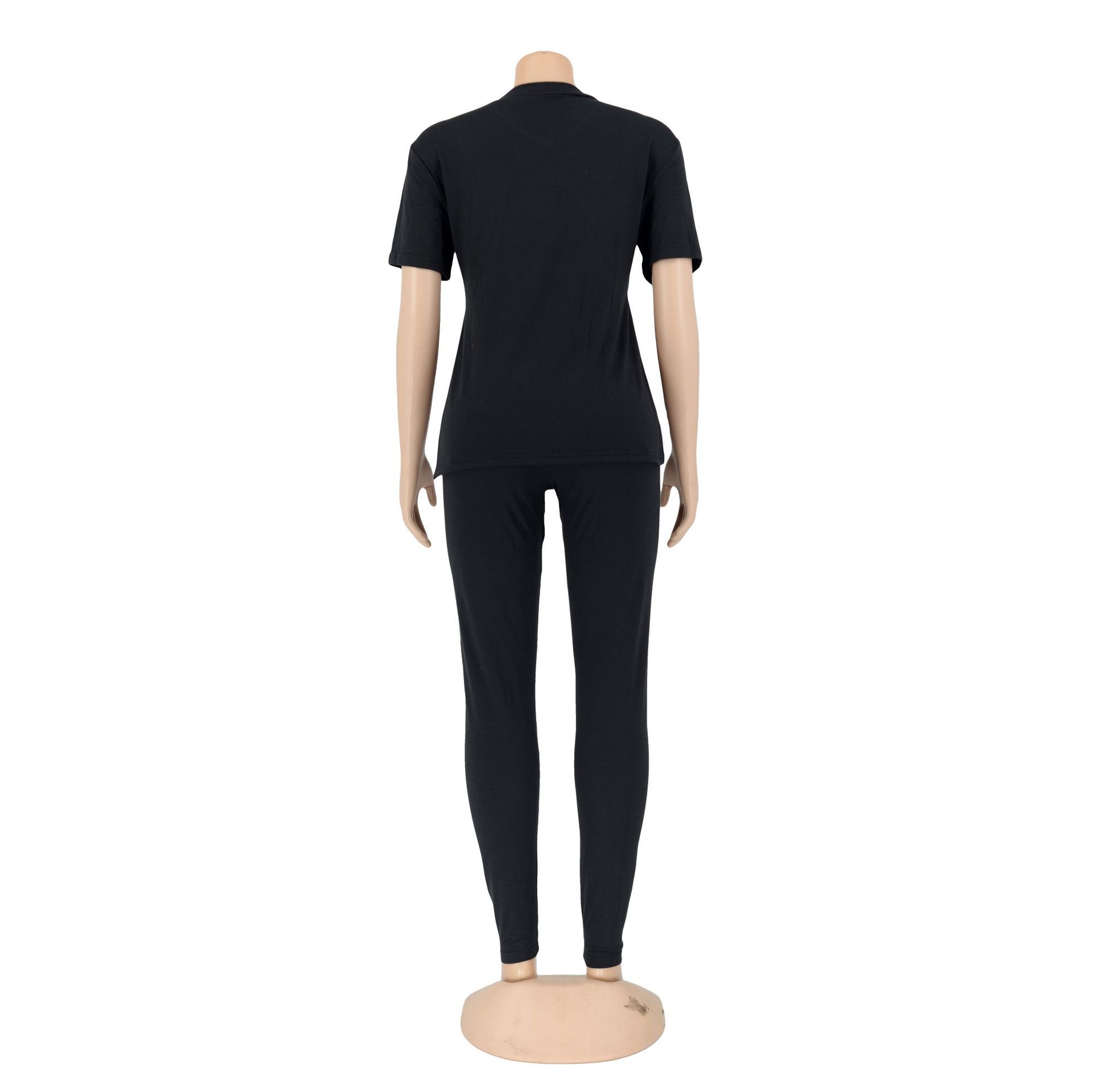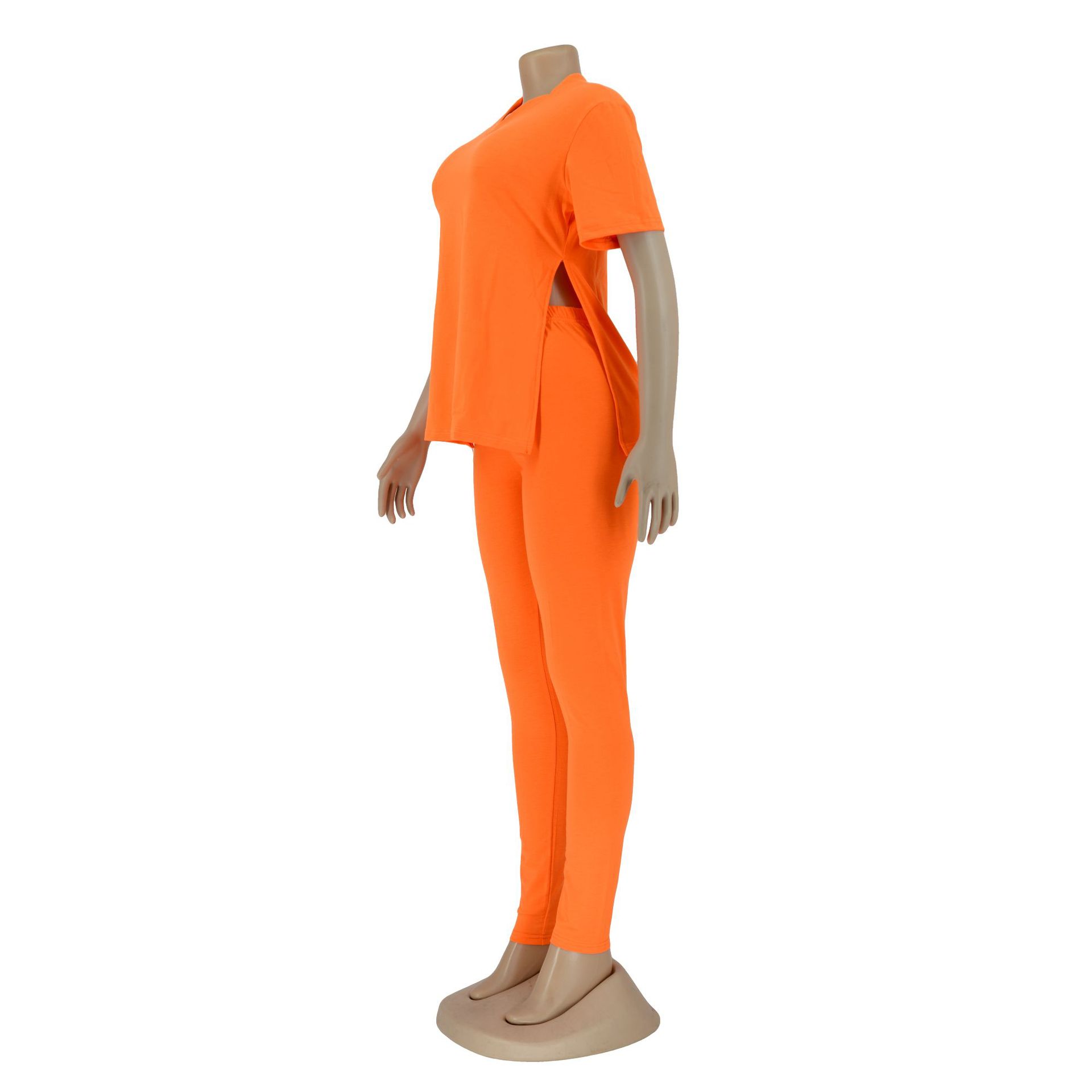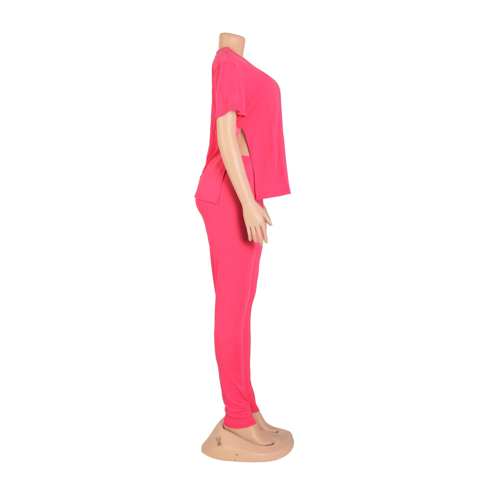Short Sleeve Suit Split T-shirt Two-Piece Solid Color Pencil Pants