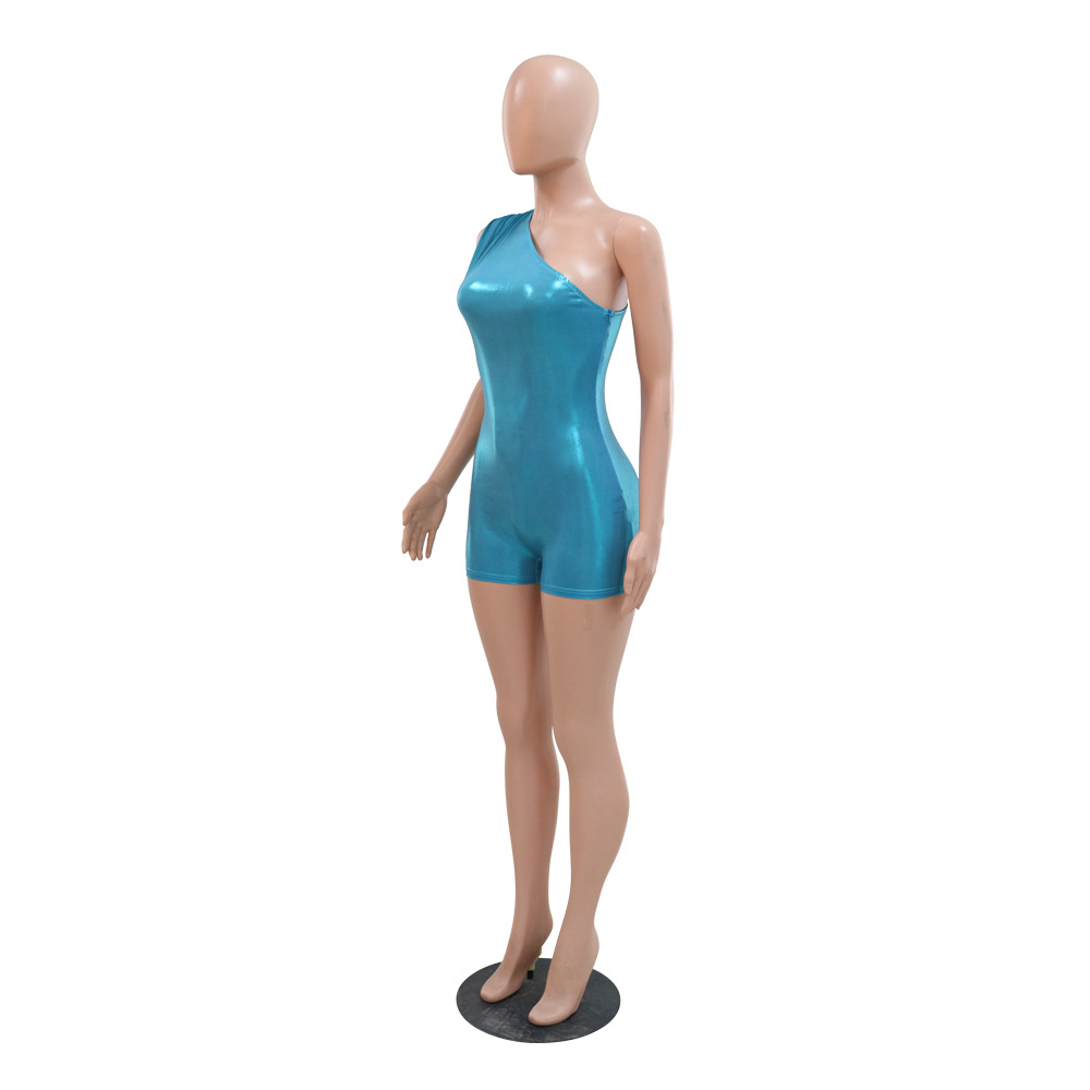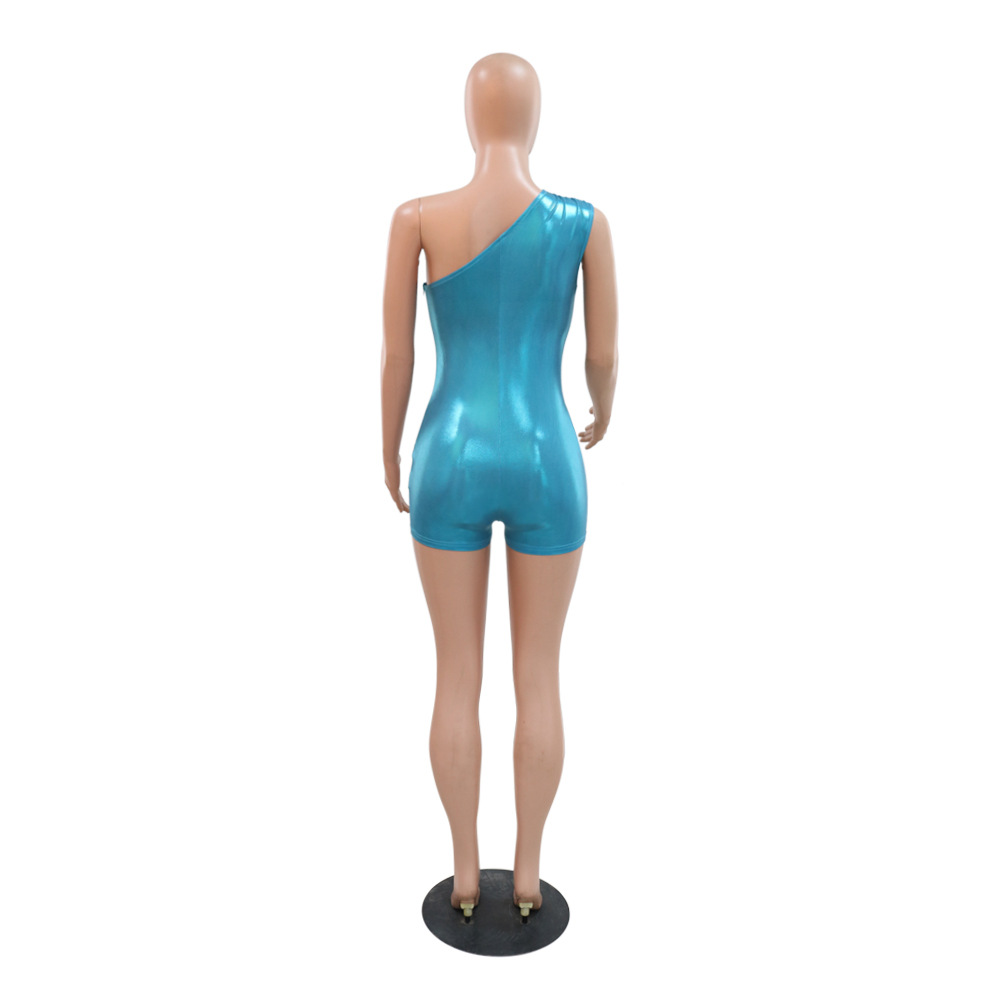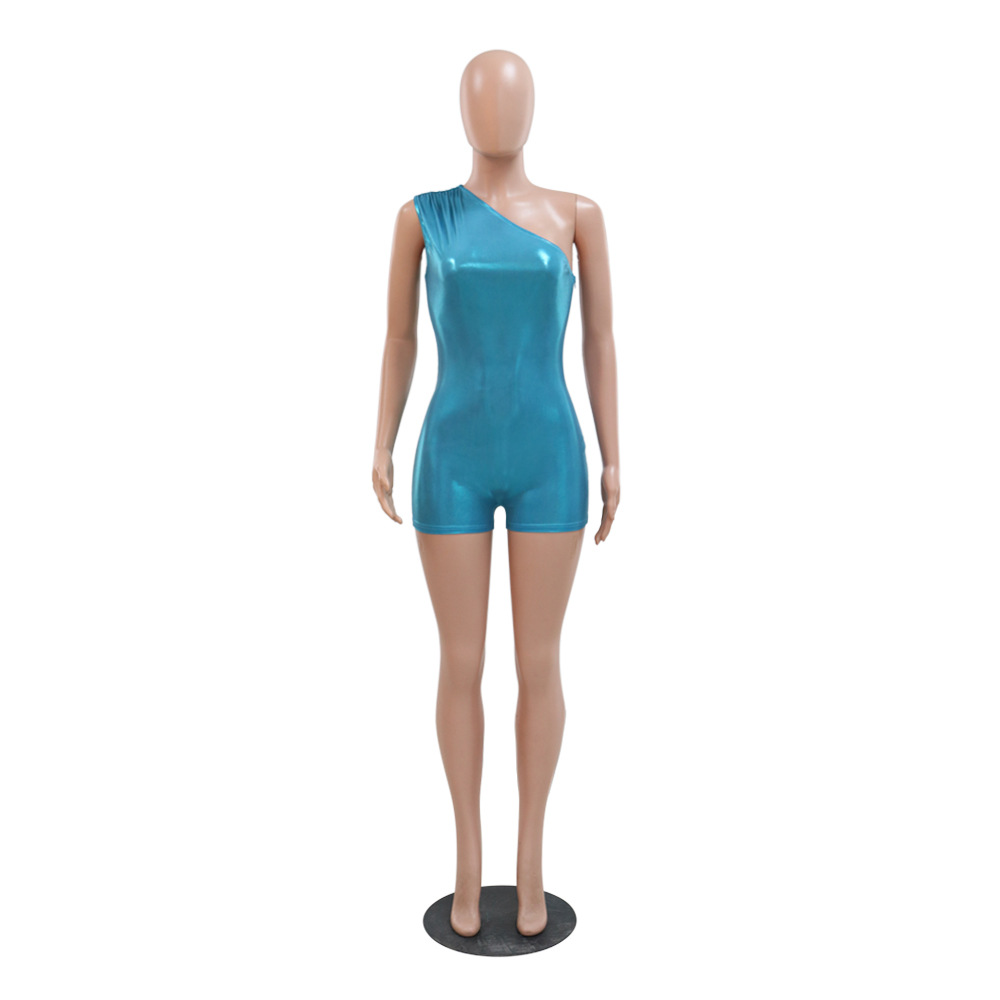 Shoulder Solid Color Slim Fit Bodysuit Casual Short