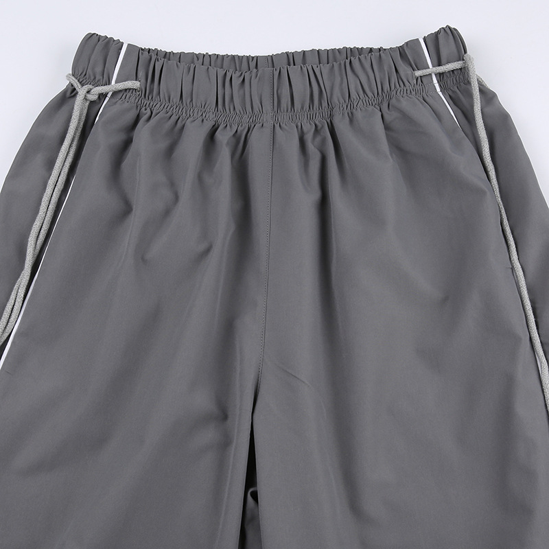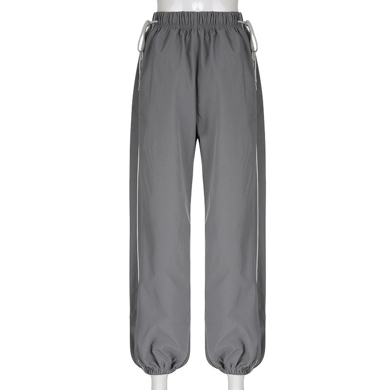 Side Bud Woven Casual Trousers Loose Slimming Lace up Elastic Waist Ankle Tied Sports Pants