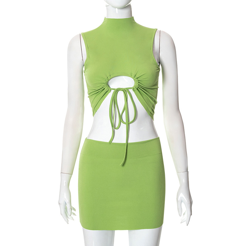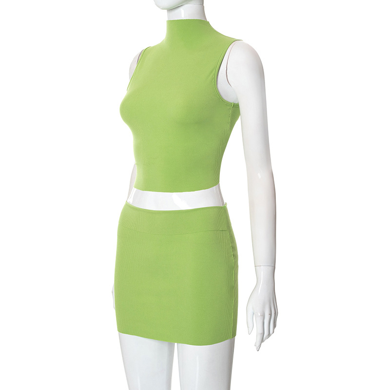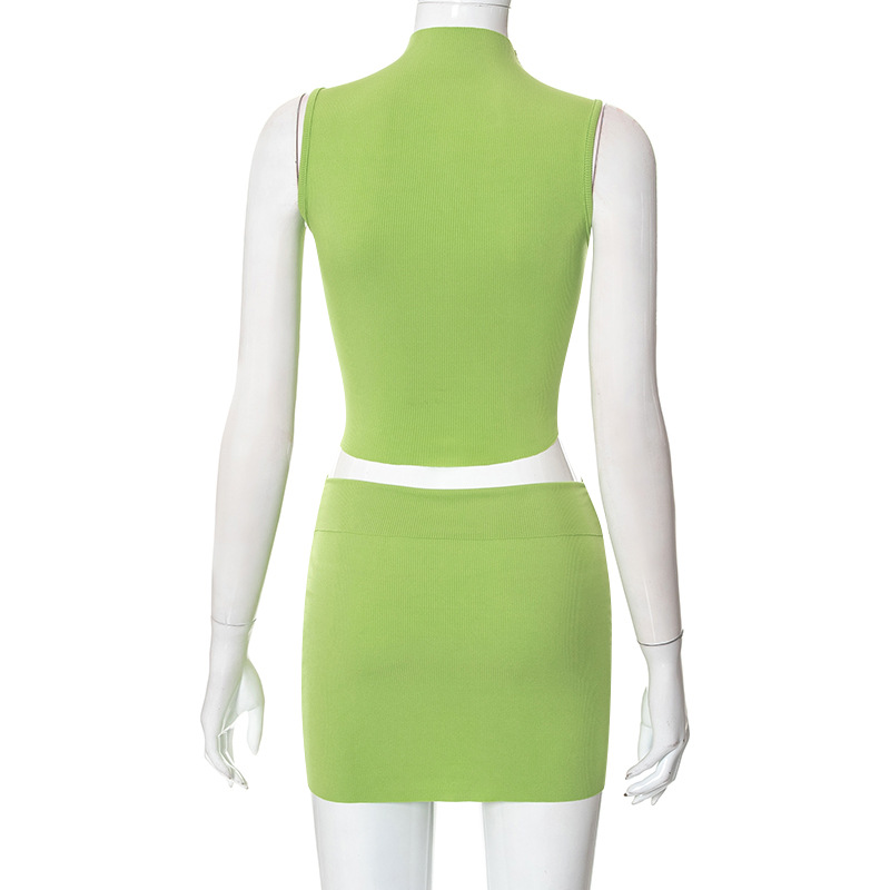 Sleeveless Double Wear Vest Hip Skirt Set