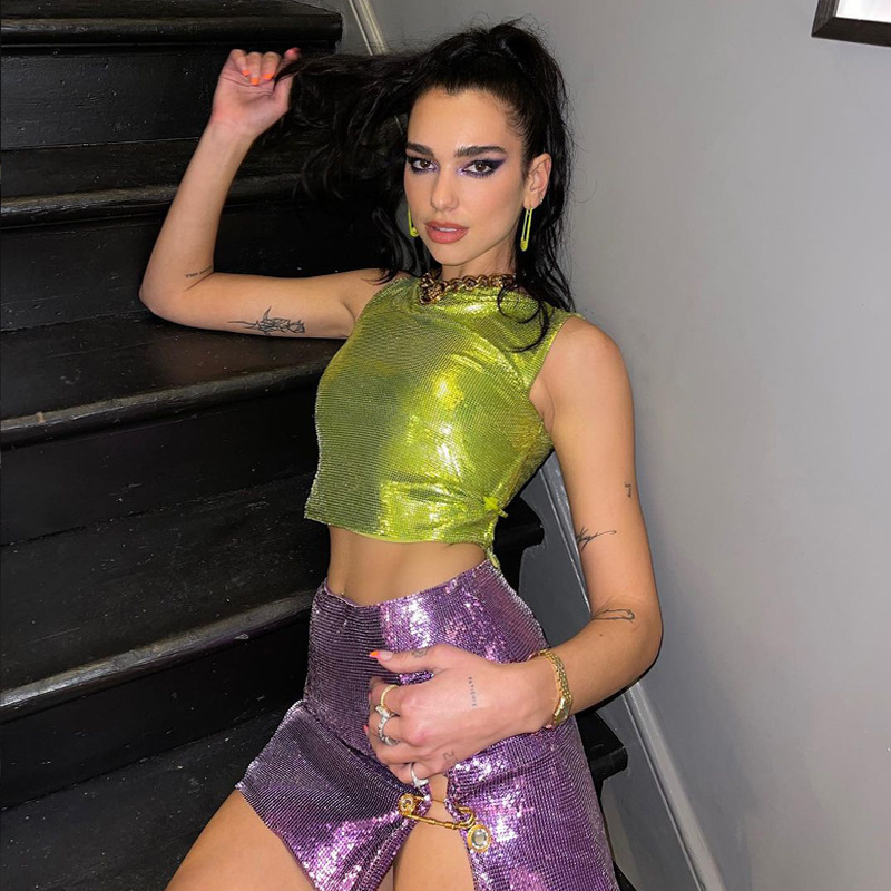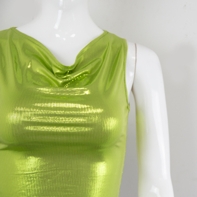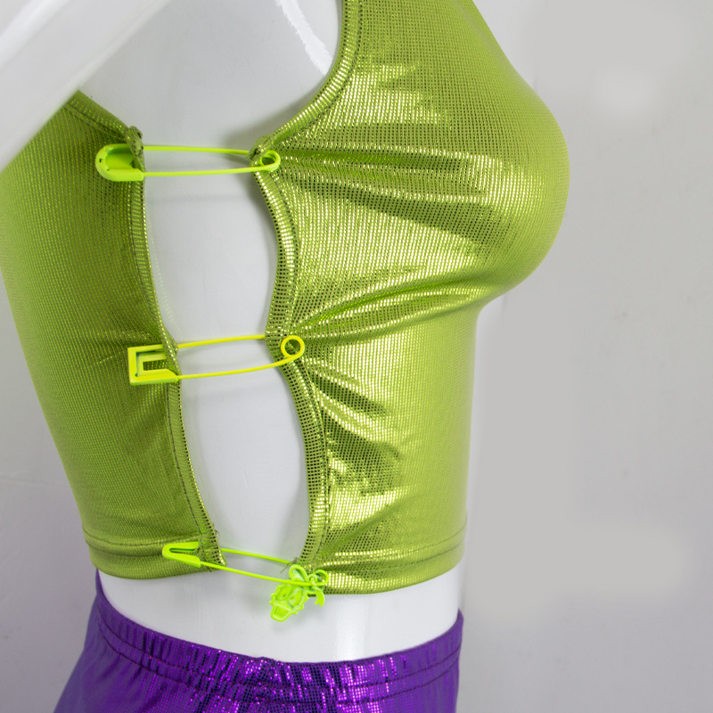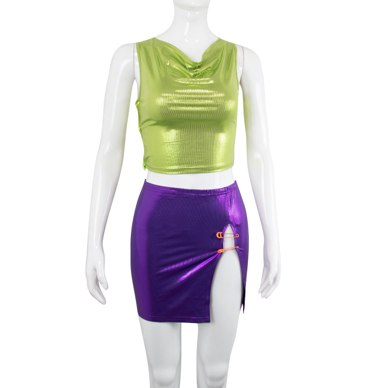 Sleeveless Short Cropped Top Split Exposed Legs Decorative Pin Skirt Outfit