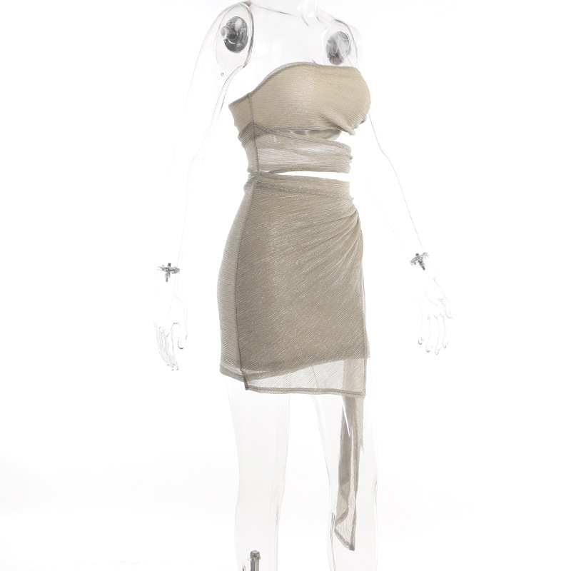 Slim Fit Chest Flattering Hip Dress Hollow Out Cutout Shiny Tube Top Dress